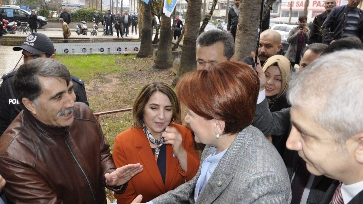 Manavgat’ta ilk olarak parti binasına gelen Akşener, partililer tarafından karşılandı.