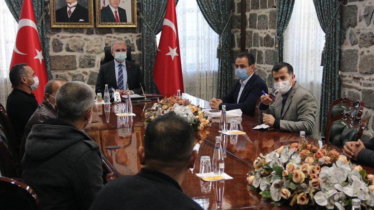 Diyarbakır Valisi Münir Karaloğlu, deprem bölgesinde görev yapan ekipleri, Sur ilçesi İçkale Müze Kompleksi'ndeki Valilik makamında kabul etti.