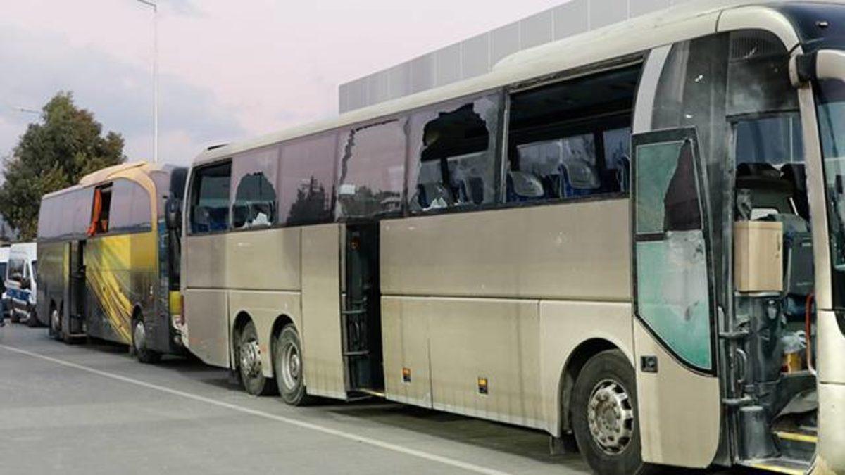 İzmir'de Beşiktaş taraftarlarının otobüsü taşlandı