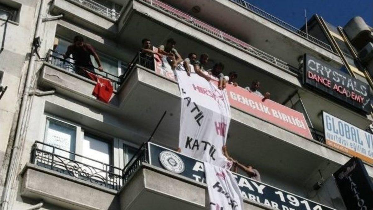 İzmir’de Başbakan ve Cumhurbaşkanı Adayı Recep Tayyip Erdoğan'ın mitingi öncesi bir grup gösterici, taşkınlık çıkardı.İzmir'de Başbakan Recep Tayyip Erdoğan'in mitingi öncesi protesto gösterisi yapan grup arasında, Türkiye Gençlik Birliği (TGB) adıyla bilinen oluşumun üyeleri taşkınlık çıkardı. Bunun üzerine harekete geçen polis, grup üyesi 12 kişiyi gözaltına aldı.Mitingin gerçekleştirileceği Gündoğdu Meydanı yakınlarında Alsancak Kıbrıs Şehitleri Caddesi üzerinde bir araya gelen muhalif gruplar, Başbakan Erdoğan’ın mitingini protesto etti. Başbakan Recep Tayyip Erdoğan aleyhine gösteri yapan grup, bir süre boyunca sloganlar atarak eylemlerine devam etti. Bu sırada, Kıbrıs Şehitleri Caddesi'nde yürüyen grubun önü çevik kuvvet polisleri tarafından kesildi. Çevik kuvvet grubun önünde ve arkasında baraj oluşturup ilerlemelerini engelledi.Bu sırada, yaklaşık 20 metre ilerideki binada bulunan TGB şubesinden de Başbakan Erdoğan'a hakaret içeren yaklaşık 10 metrelik bir pankart açıldı. Ardından TGB'liler de binadan slogan atmaya başladı. Polis TGB'nin bulunduğu binanın altındaki balkona çıkarak pankartın yarısını bıçakla kesti. Bu sırada dışarıya çıkmak isteyen TGB'li 12 kişi gözaltına alındı.Gerginliğin yaşandığı sırada, Başbakan Erdoğan henüz İzmir'e gelmemişti.