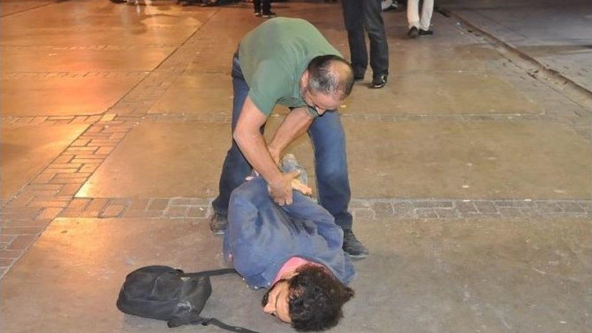 İzmir’de, Ankara’daki terör saldırısı nedeniyle toplanan yaklaşık 2 bin kişi, polise havai fişekler ve taşlarla saldırırken, olaylarda 30’un üzerinde kişi gözaltına alındı.Ankara’da meydana gelen ve 86 kişinin hayatını kaybettiği, onlarca kişinin yaralandığı terör saldırısının ardından, Konak ilçesine bağlı Alsancak semtinde HDP İzmir İl Örgütü başta olmak üzere bir araya gelen sivil toplum kuruluşu üyesi yaklaşık 2 bin kişi, durumu protesto etmek için toplandı. Tansiyonun sürekli yükseldiği yürüyüşte, eylemciler sloganlar atarak polisi dinlemedi ve Cumhuriyet Meydanı’na yürümek istedi.YÜZLERİ MASKELİ KİŞİLER SAHNEYE ÇIKTISloganlar atan grubun içerisindeki yüzleri maskeli kişilerse, polise taş ve havai fişeklerle saldırmaya başladı. Tedbirini alan polis ekipleri ise gruba başta müdahale etmedi. Güvenlik güçleri sürekli uyarılar yaparak grubun dağılmasını ve vatandaşların mallarına zarar vermemesini istedi. Bu sırada atılan taşın başına isabet etmesi sonucu ise bir vatandaş yaralandı.Olayları izleyen ve sabreden polis ekipleri, yüzleri maskeli olarak taş ve havai fişek atan kişilerin peşine düşerek gözaltına aldı. Olaylarda 30’un üzerinde kişi gözaltına alınırken, bazı vatandaşlar ise eylemcilere tepki gösterdi. Gözaltına alan kişiler, ifade için emniyete götürüldü.