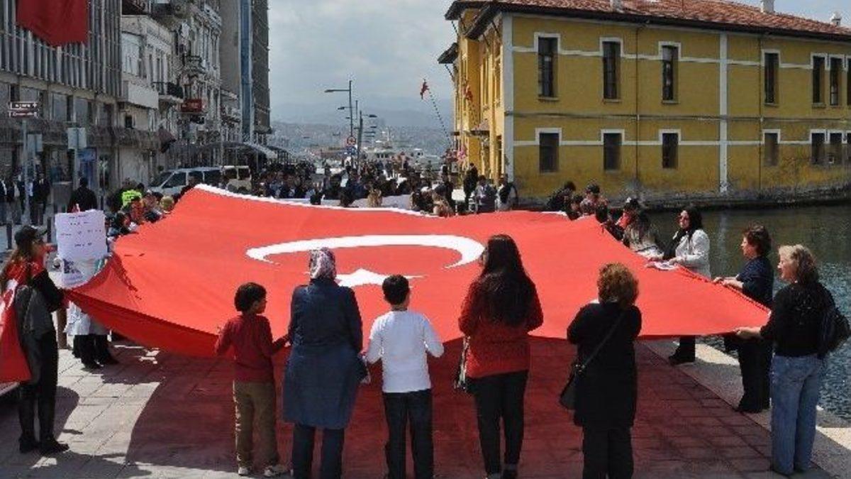 İzmir'de bir grup polis eşi, polislerin çalışma şartları ve özlük haklarının iyileştirilmesi talebiyle slogan atıp bir süre yürüdükten sonra basın açıklaması yaptı.Cumhuriyet Meydanı'nda bir araya gelen polis eşleri, dev bir Türk bayrağı açtı. Polislerin özlük hakları ve çalışma şartlarının iyileştirilmesini içeren döviz taşıyan polis eşleri, buradan kortej oluşturarak yürüyüşe geçti. Slogan atarak Kordon’dan Konak Meydanı'na yürüyen grup burada basın açıklaması yaptı.İzmir Emniyet Müdürlüğü'nde görevli polislerin eşleri olduklarını belirten kadınlara, yürüyüş sırasında emniyet görevlilerinin de tedbir amaçlı eşlik etmesi ilginç görüntüler oluşturdu.Konak Meydanı'nda grup adına basın açıklaması yapan Rana Aydemir, İzmir Emniyet Müdürlüğü'nde çalışan bir polisin eşi olduğunu, babasının da emekli Başkomiser olduğunu belirterek polislerin yaşadıkları sıkıntıları yakinen bildiğini ifade etti.Türk Polis Teşkilatının kuruluşunun 169. yıldönümünü kutladıklarını dile getiren Aydemir, polislerin devletin bölünmez bütünlüğü, halkın mutluluk ve refahı için çalıştıklarını belirtti. Polis eşleri ve aileleri olarak fedakarca çalışan eşlerine her türlü desteği verdiklerini ifade eden Aydemir, polislerin aile içinde yakinen yaşadıkları sorunları gündeme taşımak istediklerini, bu nedenle de böyle bir eylem yaptıklarını kaydetti.Amaçlarının şikayetten daha ziyade problemlerine devlet yetkililerince çözüm üretilmesini sağlamak olduğunu belirten Aydemir, Muammer Karaca'nın "Cibali Karakolu" adlı tiyatro eserinde geçen bir şiirini seslendirerek polisin içinde bulunduğu duruma dikkati çekti.Aydemir, şöyle konuştu; “Bir memur haftada 40 saat çalışırken polislerimiz bayram, seyran, gece gündüz demeden kamu düzenini korumak için haftada en az 60 saat çalışmaktadır. Ek görevlere giden polislerimiz evlerini ve ailelerini unutmaktadır. Bu şartlar altında çalışan polislerimizin aldığı maaş ise emeğinin karşılığı olmayıp zar zor geçindirmektedir. Geçim sıkıntısı nedeniyle düştükleri bunalım nedeniyle intihar eden polislerimizin sayısı azımsanamaz. Özellikle bu şerefli mesleğin mensupları, emekli olduklarında maaşları üçte bir nisbetinde düşerek yoksulluk sınırının altında kalmakta emekli ikramiyeleri ile bir ev dahi alamamaktadır. Biz, polis aileleri olarak sayın başbakanımıza öncelikle 6495 sayılı kanunla aziz şehitlerimizin ailelerine ve malül gazilerin maaş ve özlük haklarında yaptığı iyileştirmeden dolayı minnet ve şükranlarımızı sunuyoruz. Sayın başbakanımız Recep Tayyip Erdoğan'ın çeşitli tarihlerde polisimizin çalışma şartlarının iyileştirilmesi, fazla mesai, maaş, emeklilik gibi özlük haklarının iyileştirilmesine dair verdiği sözleri kısa zamanda yerine getireceğine olan güven ve inancımız tamdır."Grup, basın açıklamasının ardından dağıldı.