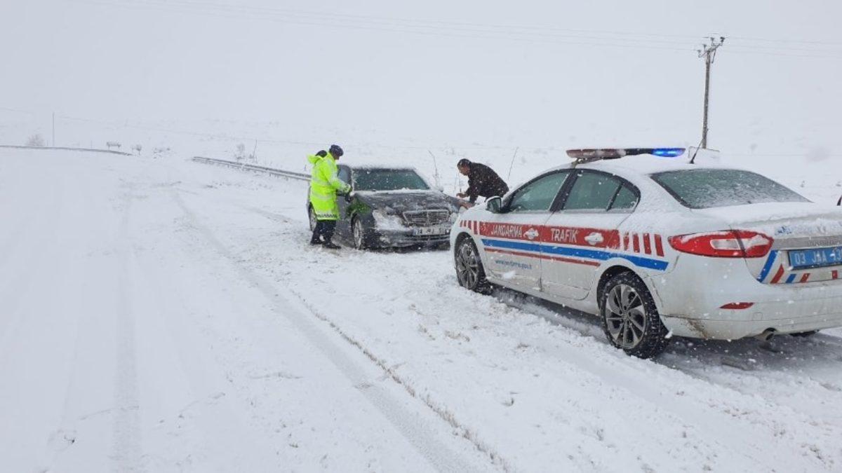 Afyonkarahisar Şuhut ilçesinde kar sebebiyle yolda mahsur kalan çok sayıda araç Şuhut İlçe Jandarma Trafik Timleri tarafından kurtarıldı.