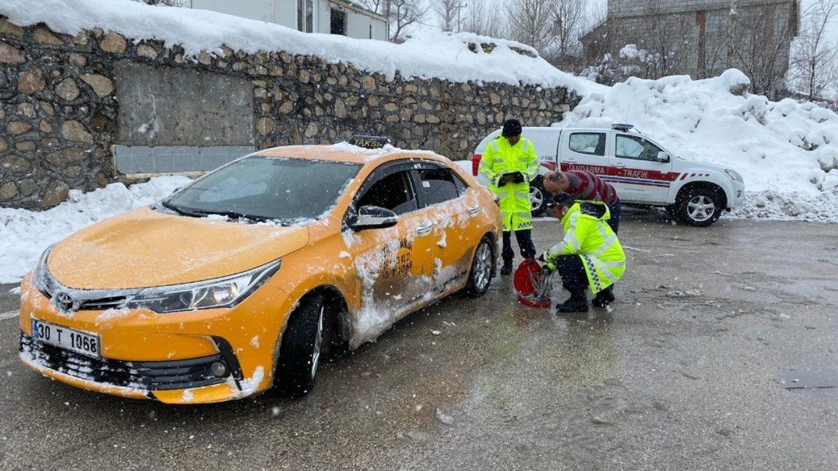 Türkiye genelinde olduğu Van İl Jandarma Komutanlığı Jandarma Trafik Timleri tarafından ağır kış şartlarına rağmen ‘emniyet kemeri ve cep telefonu’ denetimi yapıldı. Emniyet kemeri ve cep telefonu denetiminin yanında zincirsiz yola çıkan araçların ilerlemesine müsaade etmeyen Jandarma Trafik Timleri; kış şartlarında zincir takmanın ve emniyet kemeri kullanmanın öneminin yanında araç kullanırken cep telefonu kullanılmaması konusunda sürücüleri ve yolcuları bilgilendirdi.