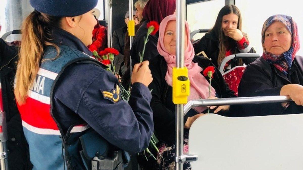 Balıkesir Jandarma Komutanlığına bağlı kadın personel Kadına Yönelik Şiddete Karşı Uluslararası Mücadele ve Dayanışma Günü dolayısıyla kadın sürücü ve kadın yolculara karanfil hediye etti.