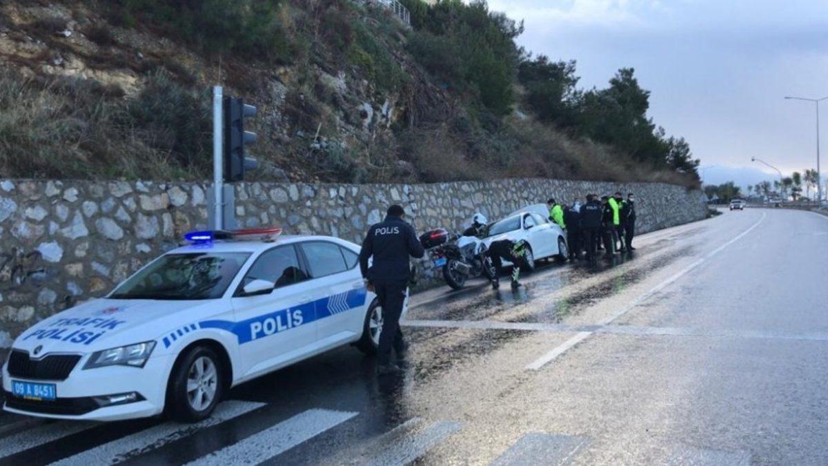 Edinilen bilgiye göre, Yeniköy Mahallesi’nde saat 21.30 sıralarında şüpheli şahıslar üzerinde uygulama yapan Kuşadası İlçe Jandarma Komutanlığı’na bağlı ekipler, 10 AAH 07 plakalı otomobile dur ihtarı yaptı. Jandarma’nın dur ihtarına uymayan şüpheli kaçmaya başladı. Otomobili kovalayan ekipler hızlı giden aracı bir süre sonra gözden kaybetti. Jandarma ekipleri durumu 155 ekiplerine bildirdi. Olay yerine çok sayıda polis ekibi sevk edildi. Akdeniz polis uygulama noktasında da polisin dur ihtarına uymayan şüpheli önce Ege Mahallesi’ne daha sonra çevre yoluna çıktı. Trafiği defalarca tehlikeye düşüren sürücü, hastane kavşağında, polis ekiplerinin yolu trafiğe kapatmasının ardından yol kenarında bulunan su kanalına düşünce yakalandı. Yapılan GBT sorgulamasında sürücünün M.S. olduğu ve ehliyeti olmadığı için kaçtığı öğrenildi. Trafik ekipleri M.S.’ye gerekli cezai işlemi uyguladı.