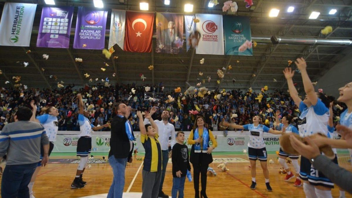 Kadınlar Basketbol Süper Ligi maçında sahaya binlerce oyuncak atıldı