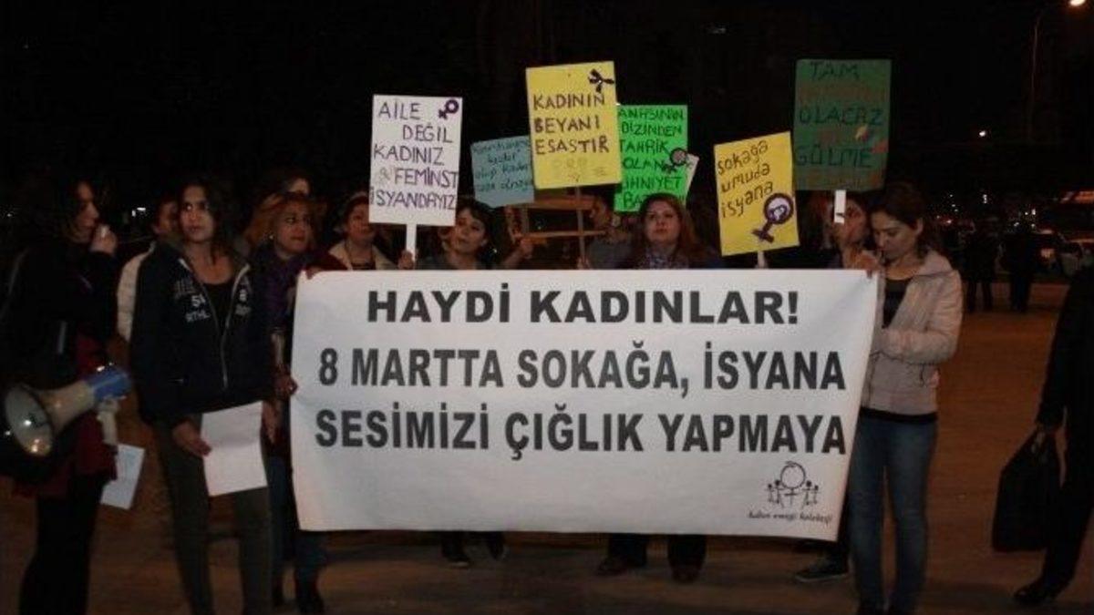 Adana’da kadınlar, düdük ve davullar eşliğinde vatandaşların 8 Mart’ta alanlara gelmeleri için çağrıda bulundu.İnönü Parkı’nda toplanan ‘Kadın Emeği Kolektifi’ üyeleri bir süre şiddet karşıtı slogan attı. Davul ve düdüklerle çevredeki vatandaşların dikkatini çeken kadınlar, diğer kadınlara seslenerek şiddete karşı 8 Mart’ta alanlara toplanmaları için çağrıda bulundu.Grup adına basın açıklamasını okuyan Seda Yüce, her geçen gün artan kadına yönelik şiddetin, kadınları birbirine daha sıkı kenetlediğini kaydetti. Kadın olmanın gece/gündüz sokakta rahat yürüyememek, evde, sokakta, işyerinde şiddete uğramak, kontrol altına alınmak ve ucuz emek gücü olarak görüldüğünü ifade etti. Kadın cinayetlerinin politik olduğunu öne süren Yüce, şöyle devam etti:“Bizler şiddetin bu denli büyümesinin nedeninin uyanışımız olduğunu biliyoruz ve artık bunu durduramazsınız. Bizler artık yaşamlarımızla, bedenimizle, kimliğimizle ilgili kararları kendimiz verme kararlılığı iler yürüyoruz. Bizleri, hayatlarımızı tükettiğiniz evlere hapsedemeyeceksiniz. Bizler aile değil kadınız. Dünyanın yarısıyız ve gücümüzün farkındayız. Bir yanımız şiddet ve ölümle örülüyse diğer yanımız direniş, isyan ve umut dolu.”Basın açıklamasının ardından bir süre slogan atan grup olaysız dağıldı.