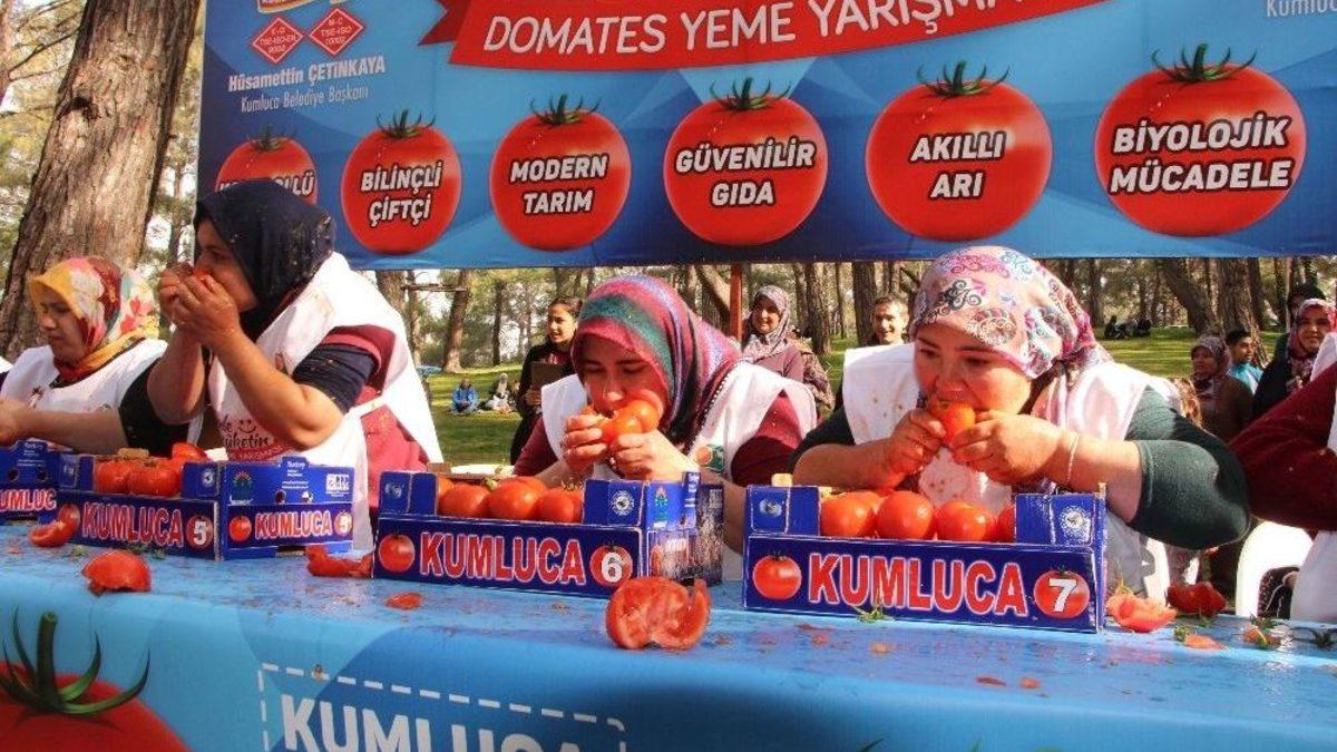 Antalya’nın Kumluca ilçesinde Belediye Spor İşleri Müdürlüğü tarafından organize edilen, “Sarnıç Tepesi” doğa yürüyüşü sonunda yürüyüşe katılan kadınlar arasında gerçekleştirilen domates yeme yarışması renkli görüntülere sahne oldu. Yarışma sonunda 3 dakikada 4 kilogram 930 gram domatesi yiyen Ela Karakaya birinciliği kazandı.Cumhuriyet Meydanından başlayarak yaklaşık dört kilometrelik Sarnıç Tepesine uzanan yürüyüş boyunca polis, zabıta ve sağlık ekibi tarafından yolda güvenlik önlemi alındı.Kumluca Belediyesine ait içerisinde hayvanat bahçesi, piknik ve mesire alanı bulunan Sarnıç Tepesi’ne ulaşan yürüyüşçülere Kumluca Belediyesi ve Karşıyaka Mahallesi Muhtarlığı tarafından hazırlanan mercimek çorbası, zeytin, peynir, domates, salatalık, pişi ve çaydan kahvaltı ikram edildi.“Yürüyüşün teması domates”Kahvaltının ardından konuşan Kumluca Belediye Başkanı Hüsamettin Çetinkaya, belediye olarak her ay bir doğa yürüyüşü gerçekleştirdiklerini ve bu yürüyüşlerin her birinin farklı temaları olduğunu belirterek, bu yürüyüşün de temasının domates olduğunu söyledi. Kumluca ve yöresinde üretilen ürünlerin doğal ve kontrollü olarak üretildiğini kaydeden Çetinkaya, “Kumluca’nın var oluş nedeni domates. Bugünkü yürüyüşümüzde Kumlucalılar olarak, üreticiler olarak buradan vermek istediğimiz mesaj şu. Kumluca’da üretilen ürün güvenilir gıda, herkes sofrasında eğer Kumluca’da üretilmişse hiç endişe duymadan yiyebilir. Biz doğal üretim yapıyoruz, toprakta yetiştiriyoruz, geçmişte dedelerimiz,, nenelerimiz nasıl yetiştirmişse toprağa bağlı olarak yetiştiriyoruz.” dedi.Tarım sektörü için yanlış algı oluşturulmaya çalışıldığını vurgulayan Çetinkaya, ’Biz burada küçük çiftçiler, aile işletmeciliği yapıyoruz. Hal böyle olunca bizim gücümüz sermaye ile mücadele etmeye yetmiyor. Hal böyle olunca biz ürettiğimiz ürünü 1.10 kuruşa satıyoruz, 5 liraya, 6 liraya başkaları satıyor. Halbuki burada olması gereken tam tersi. Eğer tüketiciler bu konuyu bilmezlerse doğal yollarla üretilen ürünü değil, suni olarak yetiştirilen ürünü çok fazla fiyata tüketir. Bu da hem bizim üreticimize, hem de doğal olarak tüketim yapamayan tüketicilerimize zarar verir. Biz doğru olanı yapıyoruz, topraklı üretime devam edeceğiz. Kumluca bir gün bu yaptığı doğruları tüketiciye anlatacaktır. Bunu sizlerle birlikte biz başaracağız.”“Kadınlar ve çocuklar arası domates yeme yarışması”Konuşmanın ardından yürüyüşe katılan kadınlar ve çocuklar arasında domates yeme yarışması yapıldı. 10 kadının yarıştığı yarışma öncesi kadınlar yiyecekleri domates kasalarını hassas terazilerle tartarak aldılar. Jüri üyelerinin gözetiminde yapılan yarışma sonunda 3 dakikada 4 kilo 930 gram domates yiyen Ela Karakaya birinci, 4 kilo 765 gram domates yiyen Meral İlci ikinci ve 3 kilo 580 gram domates yiyen Naciye Aydemir ise üçüncü oldu. Çocuklar kategorisinde ise 3 dakikada 1 kilo 575 gram domates yiyen Kazım Gencer birinci, 1 kilo 3 40 gram domates yiyen Beytullah Koncuk ikinci ve 715 gram domates yiyen Yusuf Yıldırım ise üçüncü oldu.Yarışmada dereceye giren kadın ve çocuklara Belediye Başkanı Hüsamettin Çetinkaya, Garnizon Komutanı Jandarma Binbaşı Gürcan Yıldırım, daire amirleri ve mahalle muhtarları tarafından kupa ve madalyaları verildi.Domates yeme yarışmasında birinci olan Ela Karakaya, domates yeme yarışmasında maksatlarının yarışmak değil, domatesin kalitesini göstermek olduğunu belirterek, “Bizim domatesimiz gayet sağlıklıdır. Burada biz hiç domatesleri yıkamadık. Seradan nasıl geldiyse o şekilde yedik. Doğal ve çok lezzetliydi.” dedi.Çocuklar kategorisinde birinci olan Kazım Gencer ise yarışmada kupayı almasının biraz zor olduğunu ancak yarışmada birinci olarak kupa kazandığını için gururlu olduğunu söyledi.