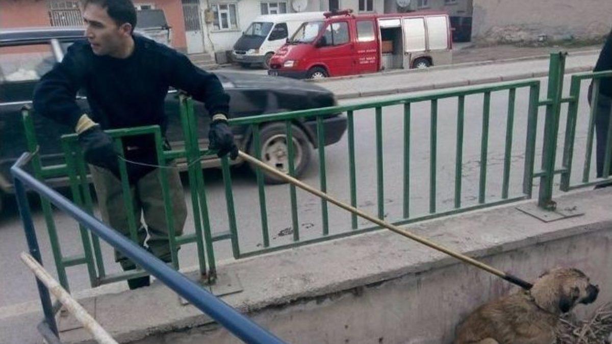 Kütahya’da 2,5 metre derinliğindeki su kanalına düşen sokak köpeği, itfaiye erleri tarafından kurtarıldı.Vatandaşlar, itfaiyeye bir köpeğin sulama kanalına düşerek mahsur kaldığı ihbarında bulundu.Sevk edilen itfaiye ekibi, Gaybiefendi Mahallesi’ndeki kanala indi. Islanan ve korktuğu anlaşılan sahipsiz köpek ağ vasıtasıyla kanalın dışarısına çıkardı.Bir süre kendini kurtaran itfaiye erinin peşinden ayrılmayan köpek daha sonra koşarak uzaklaştı.(EFE)