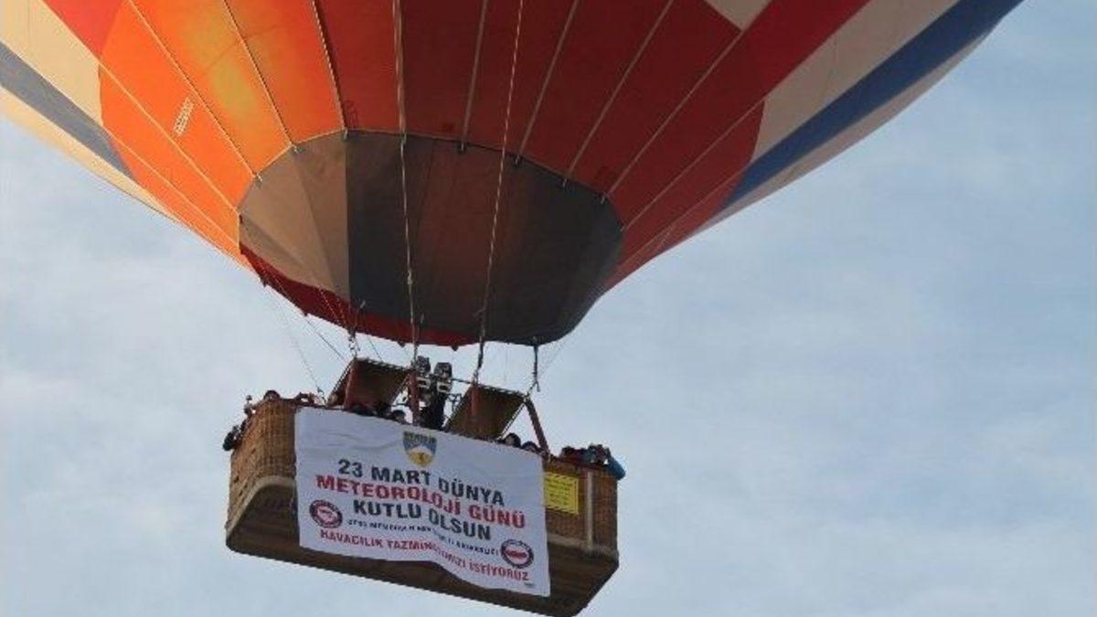 Türkiye’nin en önemli turizm merkezlerinden biri olan Kapadokya’da balonlar, Meteoroloji pankartları ile uçtu.Meteoroloji Genel Müdürlüğü’ne çalışanlarına havacılık tazminatının ödenmesi için Büro Memur-Sen tarafından Türkiye genelindeki meteoroloji müdürlüklerinde başlatılan iş yavaşlatma eylemine destek için, 23 Mart Dünya Meteoroloji Gününde Kapadokya semalarında sıcak hava balonlarına “Havacılık Tazminatımızı istiyoruz” pankartları asıldı.Balonların havalandığı Nevşehir’in Göreme Beldesi’ndeki alanda açıklama yapan Genç Memur-Sen Nevşehir İl Başkanı Mustafa Hüseyin Keser, tüm meteoroloji çalışanlarının gününü kutlayarak, Orman ve Su İşleri Bakanı Veysel Eroğlu’na Havacılık tazminatı konusunda verdiği sözü yerine getirmesini istedi.Keser: “23 Mart Dünya Meteoroloji Günü’nde Nevşehir Genç Memur-Sen olarak yine alanlardayız. Eğitimde, sporda, adalette, turizmde ve birçok alanda özellikle de ulaşım sektöründe meteorolojinin verileri sürekli kullanılmakta ve hava tahminlerinin yüzde 90’ın üzerinde tutarlılığı var. Özellikle Orman ve Su İşleri Bakanı Veysel Eroğlu’nun meteoroloji çalışanlarına söz vermiş olduğu Havacılık tazminatını gündeme getirmek istiyoruz. Avrupa Hava Seyrüsefer Emniyeti Teşkilatı (Eurocontrol) tarafından havacılığa katkılarından dolayı Meteoroloji Genel Müdürlüğü ve Devlet Hava Meydanları İşletmesi’ne personel gideri olarak para ödeniyor. Devlet Hava Meydanları İşletmesi, aldığı bu parayı havacılık tazminatı adı altında personeline öderken Meteoroloji çalışanları bu tazminatı alamıyor. Havacılık tazminatının meteoroloji çalışanlarının hakkıdır. Bakanımızın havacılık tazminatı noktasında meteoroloji çalışanlarımızın yanında olmasını ve verdiği sözü yerine getirmesini diliyoruz. Yaptığımız bu etkinlikle meteoroloji çalışanlarının yanında olduğumuzu hissettirmek istiyoruz. Sayın Bakan Eroğlu’ndan bir kez daha sesimizi duymalarını istiyoruz. Havacılık tazminatı tüm meteoroloji çalışanlarımızın hakkıdır. Er yada geç bu hak alınacaktır” dedi.İçerisinde Uzakdoğulu ve Avrupalı turistlerin bulunduğu balonların uçuşu yaklaşık 1 saat sürdü.