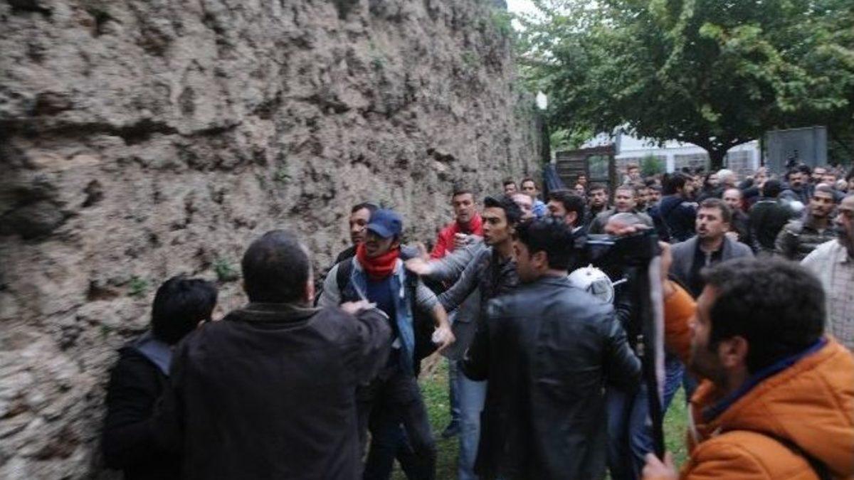Antalya Sanatçılar Derneği’nin (ANSAN) boşaltılmasını protesto etmek isteyen sanatçı ve çeşitli STK üyeleri ile polis arasında arbede çıktı. Polisin kazayla TOMA ve sulu müdahalede bulunduğu olayda 1 kişinin gözaltına alındığı öğrenildi.ANSAN’ın boşaltılmasını yürüyüşle protesto etmek isteyen Antalyalı sanatçı, sanat dostu, siyasi parti, çevreci, akademisyen, çeşitli sivil toplum örgütü üyesi yaklaşık 500 kişi Attalos Heykeli önünde bir araya geldi. ‘Sanatı, ANSAN’ı, Çağdaş Yaşamı, Kentimizi Savunuyoruz, Zorbalığa Hayır’ pankartı açan kalabalık grup, ‘Sanat Özgürlük, Direniş’, ANSAN Bizim Antalya Bizim’, ‘Sanat Özgürlük Direniş’ dövizleri taşıyarak, sloganlar eşliğinde Antalya Büyükşehir Belediyesi’ne doğru yürüyüşe geçti. Hükümet aleyhinde slogan atan grup Işıklar Caddesi Üç Kapılar önüne kadar olaysız yürüdü. Eylemciler, düdük ve ıslıklarla yaşananları protesto etti.Yürüyüş devam ederken, bazı eylemciler ile polis arasında sözlü tartışma başladı. Polislerle, gruptakilerin sözlü atışması kısa sürede büyüdü. Polis kendisine hakaret ettiği ileri sürülen şahsı gözaltına almak isteyince gerginlik tırmandı. Gruptaki bazı şahıslar kendilerini tahrik ettiklerini öne sürdükleri sivil polislerin üzerine yürüdü. Tüm uyarılara rağmen gruptakilerle polis arasında arbede yaşandı ve polisler kaçmaya başladı. Ardından surlar önünde kavga çıktı. Gruptan bir kişi Güvenlik Şube’de görevli bir komisere sandalye ile vurdu. Diğer polisler de grup üyesini uzaklaştırmaya çalıştı. Gruptakilerden bazıları yerlerde sürüklendi. Polisler güçlükle grup önünden uzaklaşırken, Büyükşehir önünde bekleyen Çevik Kuvvet ve TOMA hemen caddeye ters yönden geldi. Polislerin kaçtığını gören TOMA, kaza ile tazyikli su düğmesine bastı. Grup üzerine atılmak amacıyla sıkılan su, yol kenarındaki bir kafedeki müşterilerin üzerine gitti. Kafede üzerine su gelmesine kızan bir kişi tepkisini sert gösterince gözaltına alındı. Ne olup bittiğini anlamayan müşteriler ise kafeden hemen uzaklaştı. Grubun önü çevik kuvvet tarafından kesildi. Bu esnada uzun araç kuyrukları oluştu. CHP İl Başkanı Cavit Arı ve STK başkanlarının polis ile yapılan görüşmenin ardından grubun yürüyüşüne izin verildi. Sloganlarla yürüyen grubun siyah çelengini Büyükşehir Belediye bahçesine bırakmalarına izin verildi. Çelengin bırakılmasının ardından grup dağıldı.