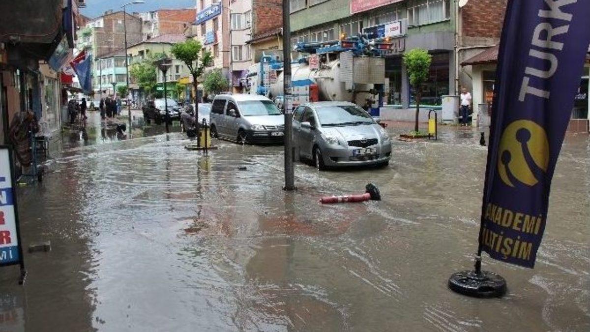Karabük’te etkili olan sağanak yağış sonrası caddeler adeta göle döndü.Karabük’te etkili olan sağanak yağış sonrası caddeler gole dönerken, yağış sonrası bazı işyerlerini de su bastı. Etkili olan yağmur sonrası Fevzi Fırat Caddesi üzerinde rögarların tıkanması ile sürücüler ve esnaflar zor anlar yaşadı. Esnaflar sürekli aynı sıkıntıyı yaşadıklarını ve daha önce defalarca su baskını ile karşı karşıya geldiklerini söyleyerek, “Başkan her tarafa köprü yapıyor, buraya da yaparsa seviniriz. Köylerde bile su arkları var su basmasın diye ama Karabük’te yok” dedi. Bazı esnafların dükkanlarına su basmaması için kum çuvalları ve demir levhalarla önlem alması dikkat çekti.