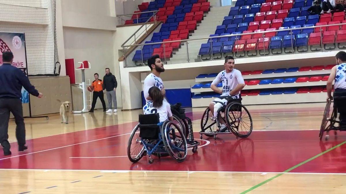 Bülent DİKTEPE/KARABÜK, (DHA)- KARABÜK’te, tekerlekli sandalye basketbol maçında sahaya giren köpek, karşılaşmanın durmasına sebep oldu.