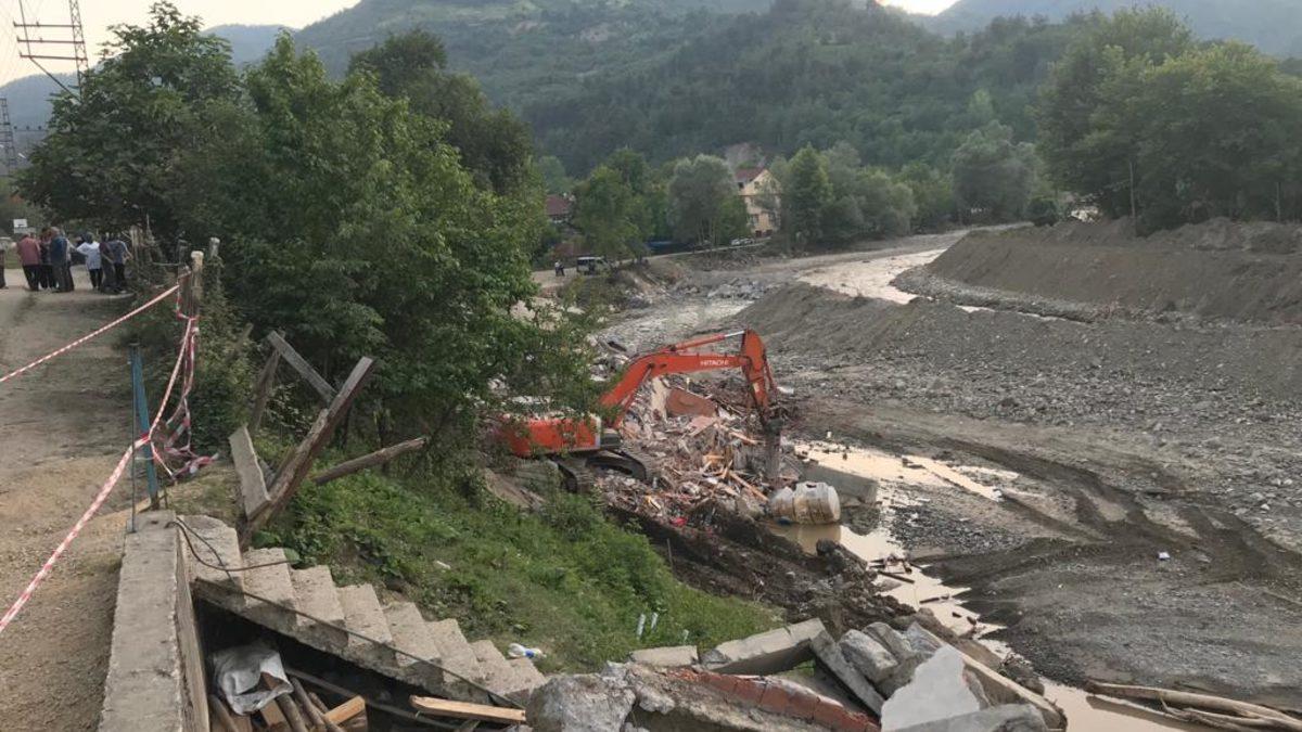 Karabük'ün Yenice ilçesinde, sağanak nedeniyle oluşan selin hasar verdiği 4 binada yıkım çalışmaları başladı.