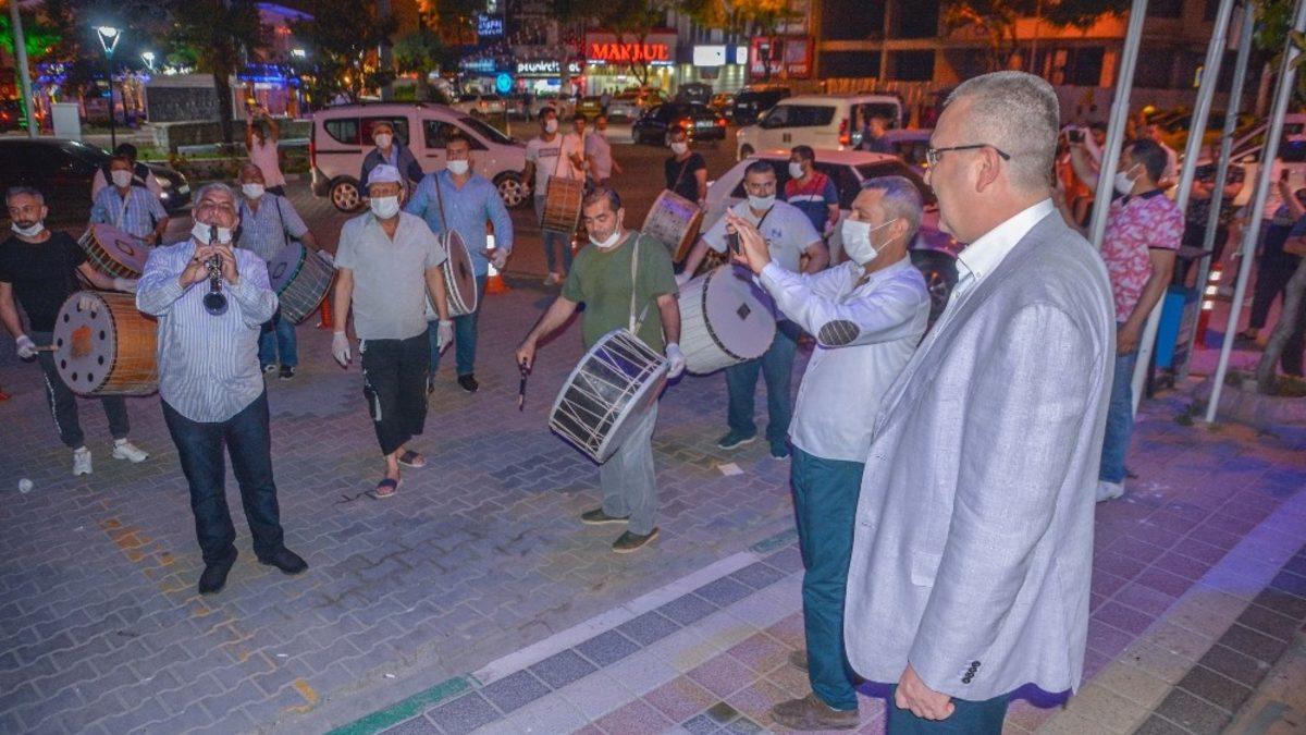 İlçede Ramazan ayında davul çalan tüm davulcular, önceki akşam belediye önüne gelerek Belediye Başkanı Ali Özkan’a bu süreçte kendilerine verdiği destek için teşekkür etti.Onlarca davulun aynı anda çalması ise vatandaşların yoğun ilgisini çekti.