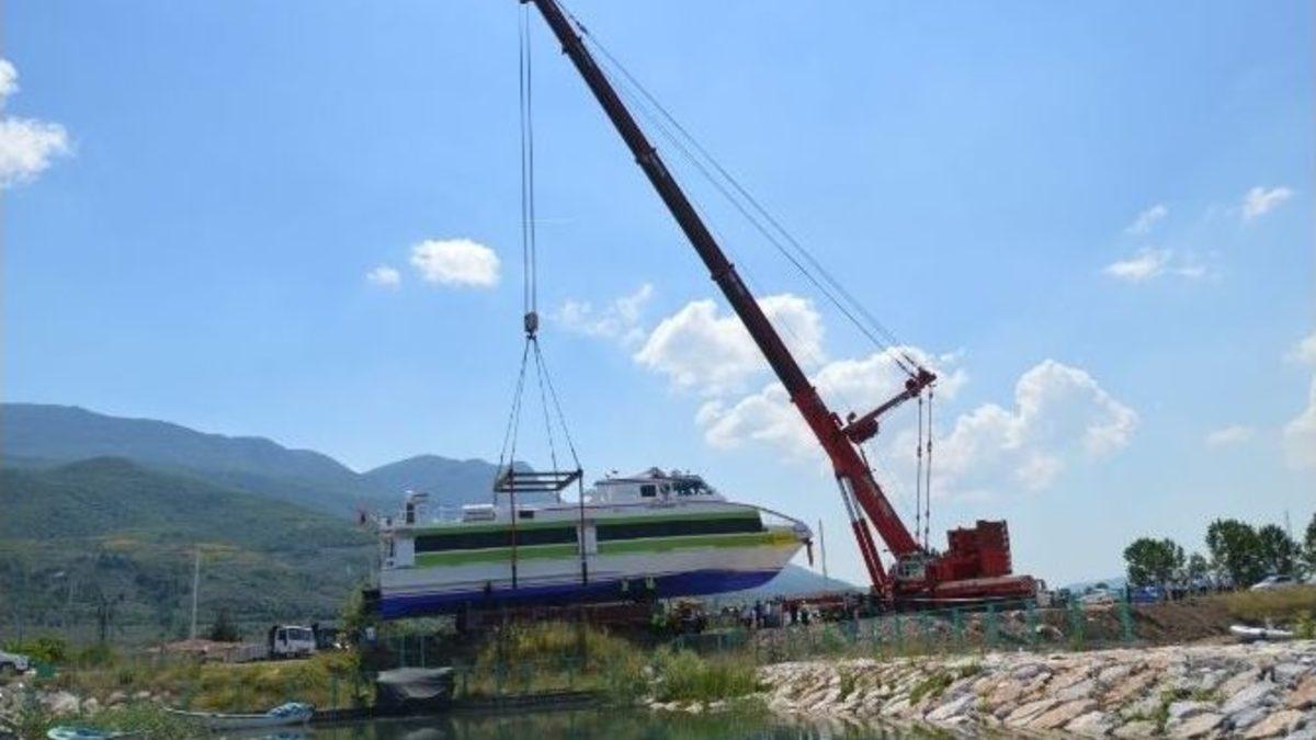 Türkiye’de, karadan nakli yapılan en büyük gemisi 12 saatte Gemlik’ten İznik gölüne ulaştı.İznik gölünde, Orhangazi ile İznik arasında yolcu taşımacılığı yapacak olan Akşemseddin adlı geminin Gemlik’ten Orhangazi’ye karadan nakli 12 saatte tamamlandı. Orhangazi’ye bağlı Gölyaka mahallesi sahilinden göle bırakılan gemiyi 700 tonluk vinç kaldırdı. İznik gölüne getirilmek üzere SPMT adı verilen hidrolik modüler dorseye yüklenen geminin, Gemlik’ten İznik gölü Gölyaka sahiline kadar olan nakli 12 saat sürdü. Saat 03:00’de Gemlik’ten hareket eden, 155 yolcu kapasiteli, 8,5 metre yükseklik, 7,5 metre genişlik ve 30 metre uzunluğundaki geminin taşınması sırasında yaklaşık 100 kişi görev aldı. Bursa Yalova karayolu ve Bursa İznik karayolu trafiğe kapatılırken, nakil saat 15:00 sıralarında tamamlandı. 155 yolcu kapasiteli Akşemseddin gemisi, İznik gölünün Gölyaka mahallesi sahiline getirildiğinde ise önceden hazır bekleyen vinç ekipleri devreye girdi. Geminin taşıma işini yürüten Aydın Vinç Denizcilik Vinç ve Liman İşletmeciliği A.Ş.’ye ait 700 tonluk vinç yaklaşık 1 saat süren çalışma sonrası halatla bağlanan gemiyi kaldırarak İznik gölüne bıraktı. Geminin nakli sırasında göl kenarına gelen Orhangazi Belediye Başkanı Neşet Çağlayan, Büyükşehir Koordinatörü İsmail Özbey ve AK Partili yöneticilerden oluşan heyet çalışmalar hakkında bilgi aldı. Akşemseddin gemisi onlarca vatandaşın meraklı bakışları arasında göle açıldı.Geminin Orhangazi ve İznik’teki iskele çalışmalarının tamamlanmasının ardından yolcu taşımacılığına başlayacağı bildirildi.