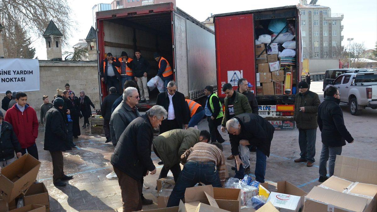 Vatandaşlar battaniye, ısıtıcı, kışlık giysi ve ihtiyaç malzemelerinin yer aldığı yardım paketleriyle Aktekke 15 Temmuz Demokrasi Meydanı'nda oluşturulan yardım toplama yerine akın etti.