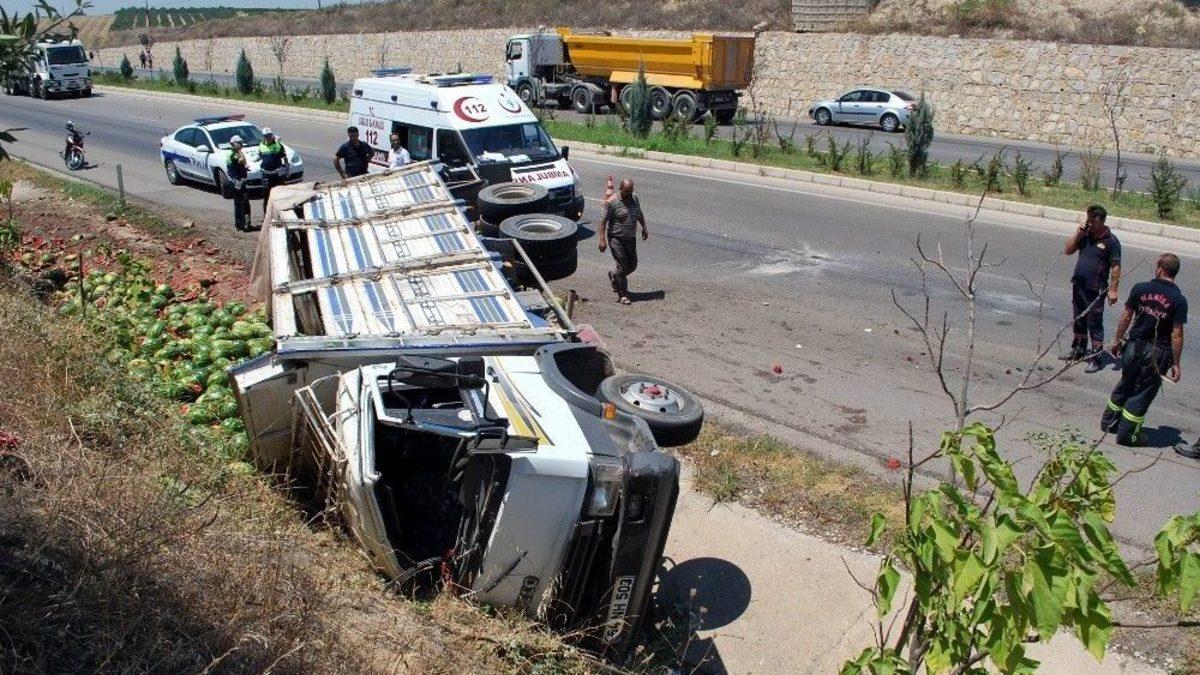 Manisa’nın Salihli ilçesinde karpuz yüklü kamyonetin devrilmesi sonucu meydana gelen trafik kazasında 3 kişi yaralandı.Kaza, E96 karayolu Salihli Organize Sanayi Bölgesi mevkiinde meydana geldi. Edinilen bilgiye göre, Salihli yönünden, Kula yönüne gitmekte olan Ramazan Çelik yönetimindeki 64 NH 503 plakalı karpuz yüklü kamyonet, sürücüsünün direksiyon hakimiyetini kaybetmesi sonucu şarampole devrildi. Kazada kamyonette yolcu olarak bulunan Oğuzhan Çoban (22) ve Yiğit Enes Diri’yi (17) sıkıştığı yerden Manisa Büyükşehir Belediyesi Salihli İtfaiye Amirliği ekipleri çıkardı.Kaza sonrası kamyonette bulunan karpuzlar yola saçılırken, yaralılardan kamyonet sürücüsü Ramazan Çelik, özel hastaneye, Oğuzhan Çoban ve Yiğit Enes Diri ise Salihli Devlet Hastanesine kaldırılarak tedavi altına alındı.Jandarma kaza ile ilgili çalışma başlattı.