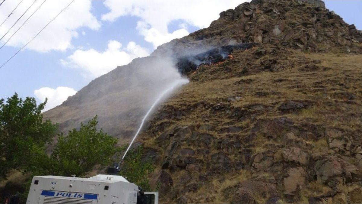 Kars Kalesi’nin arka kısmında bulunan otlar kimliği belirsiz kişi veya kişilerce ateşe verildi. Rüzgarın etkisiyle büyüyen yangına itfaiye ve TOMA müdahale etti.Kars’ta son günlerde çıkan yangınlar itfaiye ekiplerine zor anlar yaşatıyor. Kimliği belirsiz kişi veya kişilerce kurumuş otların ateşe verilmesiyle başlayan yangınları söndürmek ise zor oluyor. Son olarak bugün Kars Kalesi’nin arkasındaki otlar ateşe verildi. Rüzgarın etkisiyle yayılarak büyüyen yangına Kars Belediye Başkanlığına ait İtfaiye Müdürlüğü ekipleri ile İl Emniyet Müdürlüğü Çevik Kuvvet Şube Müdürlüğü ait TOMA müdahale etti.Dağlık alanda çıkan yangın uzun uğraşlar sonucu kontrol altına alınarak söndürüldü. İtfaiye ile TOMA’nın ortaklaşa söndürdüğü yangının kim veya kimler tarafından çıkarıldığı araştırılıyor.IÇ-SÜ-Y)