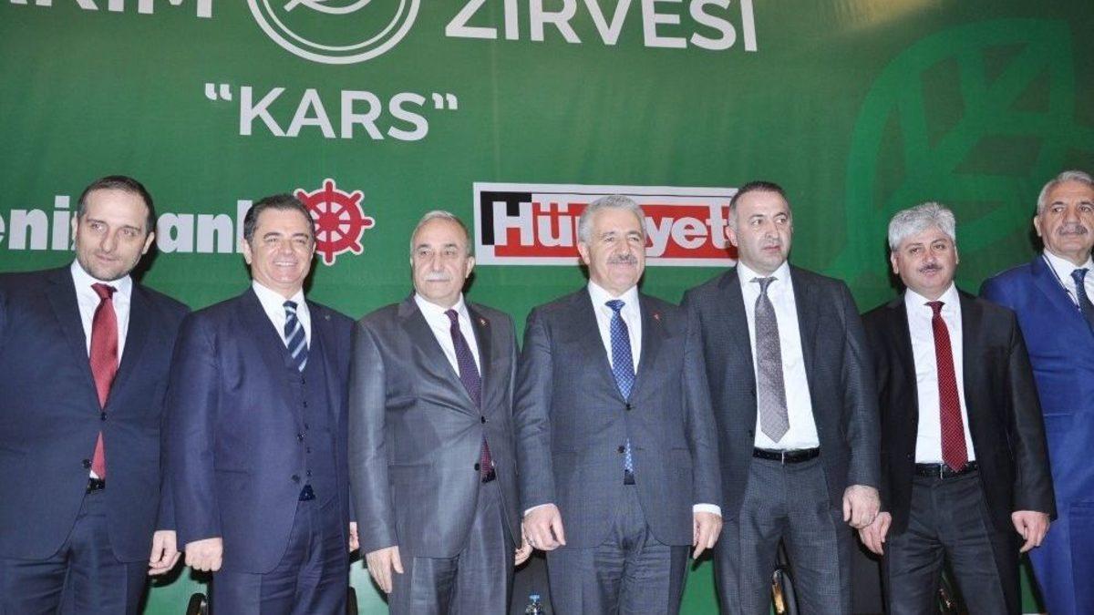 Ulaştırma, Denizcilik ve Haberleşme Bakanı Ahmet Arslan, Gıda, Tarım ve Hayvancılık Bakan Dr. Ahmet Eşref Fakıbaba’nın katılımıyla ‘Tarım Zirvesi’ yapıldı.Denizbank ve Hürriyet Gazetesi’nin ortaklaşa düzenlendiği ‘Tarım Zirvesi’ toplantısına katılan Ulaştırma Denizcilik ve Haberleşme Bakanı Ahmet Arslan, bundan sonra ‘etliye sütlüye’ karışacaklarını belirtti. Gıda, Tarım ve Hayvancılık Bakanı Ahmet Eşref Fakıbaba ise başka Türkiye’nin olmadığını söyledi.Kars İl Kültür ve Turizm Müdürlüğü Toplantı Salonu’nda Tarım Zirvesi’nin 2’incisi yapıldı. Saygı Duruşu ve İstiklal Marşı’nın okunmasıyla başlayan Tarım Zirvesi’nde konuşan Ulaştırma, Denizcilik ve Haberleşme Bakanı Ahmet Arslan, “Bir cümle ifade etmek lazım. Zaman zaman söylenir veya bölgede kullanılan bir ifade var. “Aman ha etliye, sütlüye karışma” bu çok manidar bir ifadedir. Etliye sütlüye karışma demek, başkalarının size biçtiği role göre hareket edip, başkalarının size biçtiği işlemleri yapın, işi yapın onun dışında bir ses çıkarmayın. İşte tam da bu cümleden hareketle biz artık etliye de karışıyoruz, sütlüye de karışıyoruz. Karışmak zorundayız. Ve bunu daha iyi yapmak zorundayız” dedi.Arslan, “Kars’ta tarihçilerin ifadesidir, Sarıkamış’taki şehitlerimiz dahil olmak üzere sadece bu bölgede 1,5 milyon şehidimiz var. Ve bugün eğer biz ülkenin içinde ve ülkenin dışında, ülkenin huzuru için, bekası için istikbali ve istiklali için, mücadele edip şahadet şerbeti içmeye gidiyorsak bunun bir sebebi var. Geçmişten beri bu coğrafyada bize roller biçmek istediler. Kendi menfaatleri doğrultusunda onların çıkarı neyi gerektiriyorsa, ona göre davranmamızı istediler. Biz işte ister tarım ve hayvancılıkta, ister ülkenin bekasında diyoruz ki, evet biz sizin dediğiniz gibi ‘etliye sütlüye karışmadan’ sizin menfaatlerinize göre değil, ülkemiz insanının memleketimizin menfaati neyi gerektiriyorsa ona göre davranacağız. Bir başka ifadeyle etliye de karışacağız. Sütlüye de karışacağız. Ne pahasına, ecdadın şehit olmak pahasına vatan olarak bıraktığı bu toprakları, gelecek nesillere vatan olarak bırakmak için, ne pahasına olursa olsun 80 milyon dün olduğu gibi bu günde şehadet bu günde şehadet şerbeti içmeye hazır” diye konuştu.Daha sonra söz alan ve gidecek başka bir yerimiz yok diyen Gıda, Tarım ve Hayvancılık Bakanı Ahmet Eşref Fakıbaba’da, “Gidecek başka bir yerimiz yok. Bakın gelecekleri varsa görecekleri de var. Buna emin olun, bizim kimsenin bir karış toprağında gözümüz yok. Ama bizim bir çakıl taşımızda gözü olanın gözünü çıkaracağız. Onlar görecekler. Allah’ın izniyle biz eminiz. Kendimizden eminiz. Bayrağımızı ve vatanımızı seviyoruz. Birliğimiz beraberliğimiz devam ettiği müddetçe devam edecektir. Bunların kimin oyuncağı olduğunu bu millet görmüştür. Kimin oyuncağı, kimin piyonu olduğunu bu halk görmüştür. İşte gerçek halk buradadır. Biz hepinizi seviyoruz” şeklinde konuştu.Yapılan konuşmaların ardından bakanlar Kars’tan ayrıldı. Tarım Zirvesi’ne ise devam edildi. Tarım Zirvesinde tarım ve hayvancılık konuşuldu.