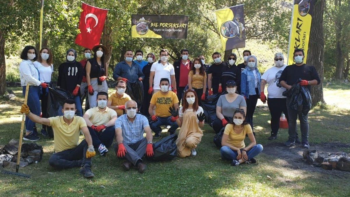 Daha sonra grup üyeleri 30 büyük boy çöp poşeti dolusu atığın doğadan temizlenmesini sağladı.