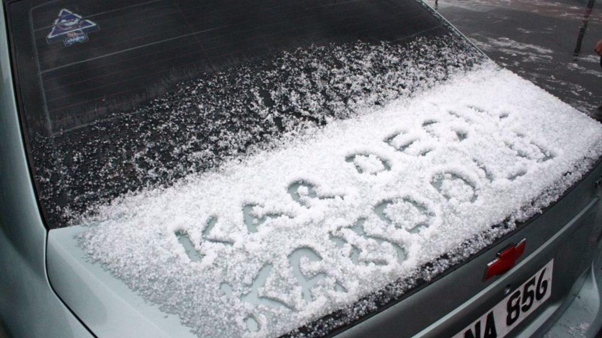 Kars’ta birkaç gündür etkili olan dolu yağışı şehri beyaza bürüdü.