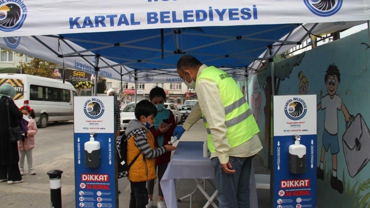 Miniklerin ilk gün heyecanını kendileri ve aileleri ile paylaşan belediye personeli, okul girişlerine kurdukları stantlardan kolonya ikramında bulunup maske dağıttı. Kurulan ayaklı dezenfektanlar ile öğrencilerin hijyen kurallarına uymalarına yardımcı olan ekipler, miniklere Kartal Belediye Başkanı Gökhan Yüksel’in başarı dilekleri ve selamlarını iletti.