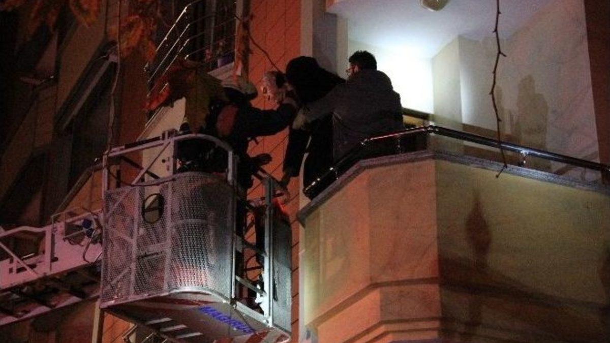 Kartal’da 5 katlı bir apartmanın birinci katında elektrikli sobanın alev almasıyla yangın çıktı. Çıkan yangında aralarında çocukların da bulunduğu çok sayıda kişi dumandan etkilenirken, bir kişide balkondan atladığı sırada bacağını kırdı.Yangın, saat 05.30 sıralarında Kartal Atalar Mahallesi Tokdemir Sokak üzerinde bulunan 5 katlı bir apartmanın birinci katında meydana geldi. Elektrikli sobanın neden olduğu yangın kısa sürede büyüyerek tüm daireyi kapladı. Çıkan seslere uyanan ev sakinleri, balkondan atlayarak kurtulabildi. Yangından etkilenen bir kişide balkondan atladı. Bacağı kırılan şahıs, çevredeki vatandaşlar tarafından olay yerinden uzaklaştırıldı. Yangında yükselen yoğun dumanın binayı kaplamasıyla üst katlarda bulunanlar mahsur kaldı. Vatandaşların ihbarı üzerine olay yerine çok sayıda itfaiye, sağlık ve polis ekibi sevk edildi. İtfaiye ekipleri, alevlere müdahale ederek kısa sürede söndürdü. İtfaiye ekipleri, üst katlarda mahsur kalan vatandaşları merdiven yardımıyla kurtardı.Dumandan etkilenenler ve balkondan atlayarak bacağını kıran ev sahibi, ambulanslarla çevre hastanelere sevk edildi. Yangın anı ise mahalle sakinleri tarafından cep telefonuyla görüntülendi.Yangından etkilenen Leyla Kantaroğlu,” Evdeydim bir sese uyandım annem kapıya buruyordu kapıyı açın diye. Kapıya vurduk sonra babam hemen anahtar getirdi. Anahtarla açtık. İçeride yangın çoktan başlamıştı, koltuklara sıçramıştı. Annemle kardeşimi balkondan çıkardık. Yangın elektrikli sobanın prizinden çıktı. Herhangi bir yaralı yok babam düşüp ayağını kırdı. Kedilerimin ikisi de öldü. İçeriden hiçbir canlı çıkaramadılar.” dedi.
