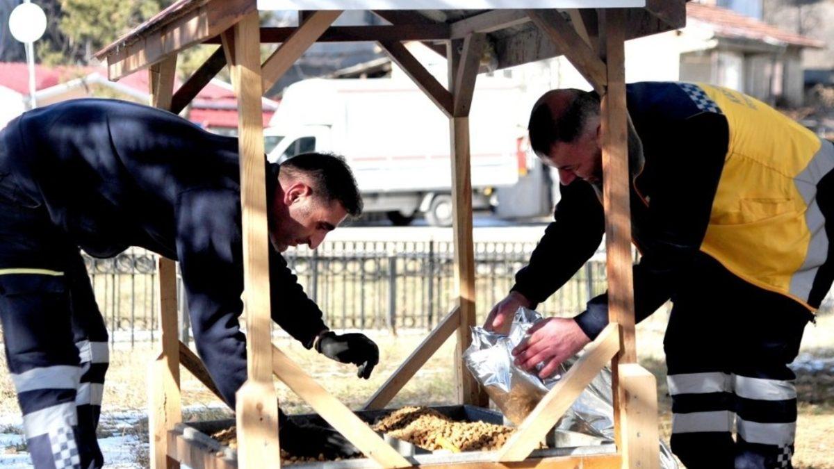 Kastamonu Belediyesi ekipleri, kış şartlarında yiyecek bulması zorlaşan sokak hayvanları için şehrin muhtelif yerlerindeki beslenme odaklarına mama bıraktı.