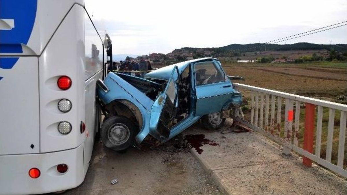 Kastamonu’nun Taşköprü ilçesinde özel bir firmaya ait otobüs ile otomobilin çarpışması sonucu otomobil sürücüsü hayatını kaybetti.Alınan bilgiye göre, Sinop’tan İstanbul’a gitmek üzere seyir halinde bulunan B.Ö. yönetimindeki 34 DF 9063 plakalı özel bir firmaya ait yolcu otobüsü, Kastamonu’nun Taşköprü ilçesi Kuruçay köprüsüne geldiği sırada karşı istikametten gelen ve köy yoluna dönmek isteyen Mustafa Kutlu (68) yönetimindeki 37 LA 064 plakalı otomobil ile çarpıştı. Çarpışmanın etkisi ile otobüs ve köprü arasına sıkışan otomobil sürücüsü Mustafa Kutlu olay yerinde hayatını kaybetti.Kazada otobüs şoförünün dikkati olası bir faciayı önlerken, yolcular ise farklı bir araçla Taşköprü ilçesine gönderildi.Kazada hayatını kaybeden Kutlu’nun bu sabah torununu Kastamonu’ya bırakmak için köyden çıktığı ve geri dönerken kaza yaptığı öğrenildi. 68 yaşındaki emekli ormancı, adli işlemlerinin ardından Taşköprü ilçesine bağlı Bey köyünde düzenlenecek cenaze merasiminin ardından toprağa verilecek.Emniyet kazayla ilgili soruşturma başlattı.