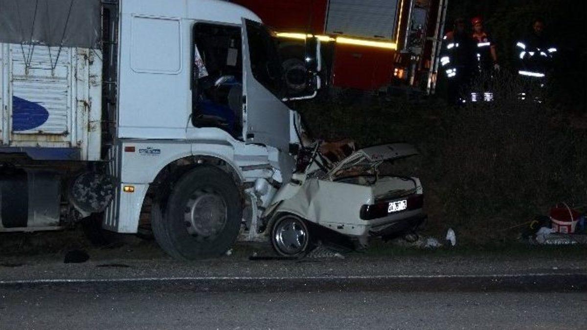 Kastamonu’da kamyon ile otomobilin çarpışması sonucu meydana gelen kazada 5 kişi hayatını kaybetti.Edinilen bilgiye göre, Kastamonu’nun Araç ilçesine bağlı Karacalar köyü mevkiinde Ayhan Ünal idaresindeki 34 DGT 79 plakalı otomobil, sürücüsünün direksiyon hakimiyetini kaybetmesi sonucu karşı yönden gelen Muzaffer Kayış idaresindeki 37 DR 681 plakalı kamyonun altına girdi. Kazada otomobil içerisinde bulunan sürücünün eşi Kezban Ünal, yengesi Nurcan Ünal, yeğenleri Arza Ünal (14), Ali Ünal (18) olay yerinden hayatını kaybetti. sürücü Ayhan Ünal’ın Kastamonu’nun Ağılı ilçesindeki annesinin cenazesine katılmak için İstanbul’dan geldikleri öğrenildi. Öte Yandan saat 22.00 sıralarında meydana gelen kazada otomobil içerisinde bulunan 5 kişinin cesetlerini kurtarma çalışmaları devam ediyor.