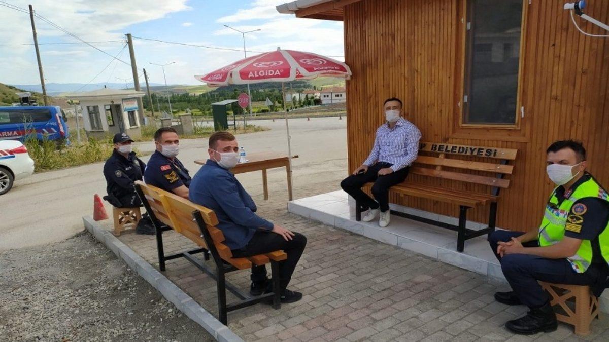 Kontrol noktasında görev yapan emniyet, jandarma ve zabıta görevlilerinin bayramını kutlayan Kaymakam Eligül, görevlilerle sohbet etti.