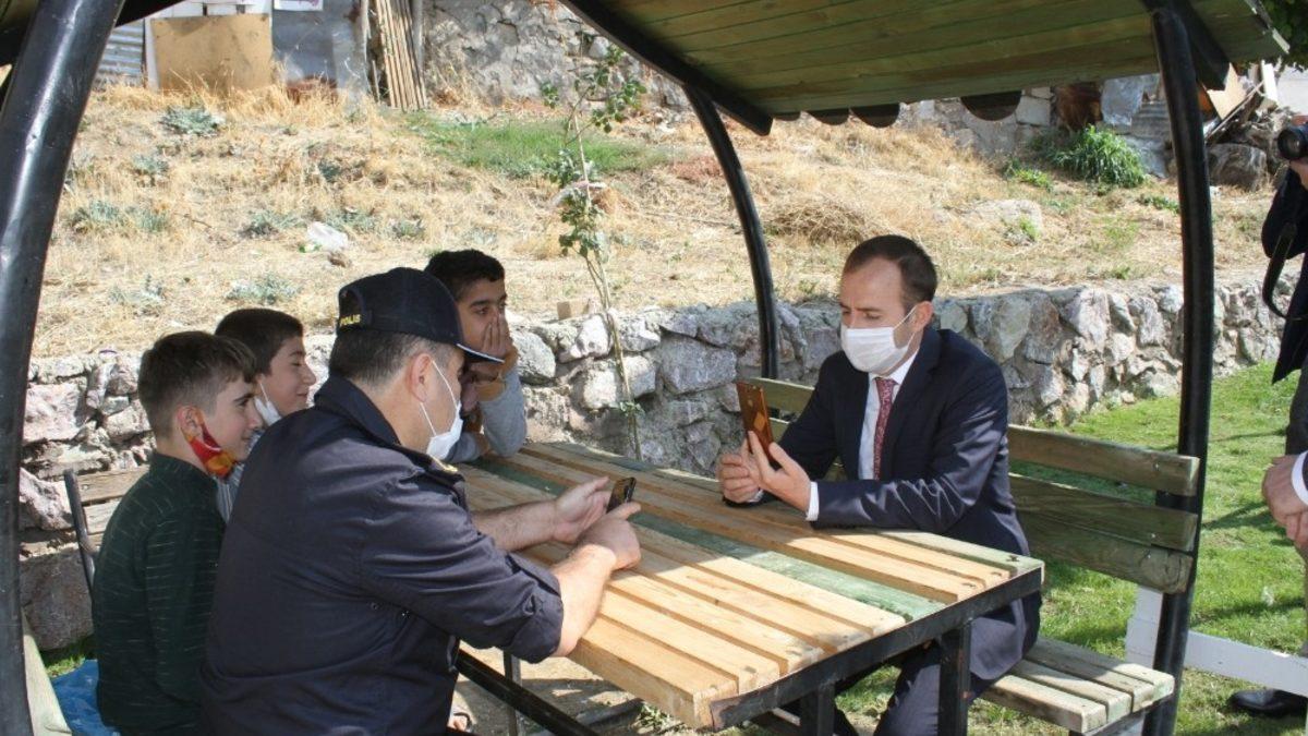 Hakkari’nin Şemdinli Kaymakamı Yakup Güven, belediye parkında oturan öğrencilerle bir araya geldi.