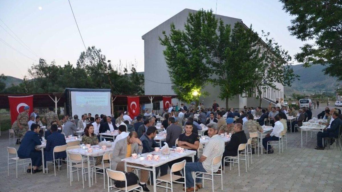 Muş’un Hasköy Kaymakamlığı tarafından şehit aileleri, gazi ve muhtarlara yönelik iftar programı düzenlendi.Hasköy Kaymakamlığı tarafından köylerde düzenli olarak kurulmaya başlanan iftar sofraları, bu defa şehit yakınları, gaziler ve muhtarlar için kuruldu. Hasköy ilçe Jandarma Komutanlığı bahçesinde düzenlenen program, Kur’an-ı kerim tilaveti ile başlayıp, ardından dualar edilerek ezanın okunmasıyla yemeğe geçildi. Yemeğin ardından bir konuşma yapan Hasköy Kaymakamı Ahmet Özkan, Ramazan ayının evvelinin rahmet, ortasının mağfiret, sonunun ise cehennem azabından kurtuluş olduğunu söyledi. Ramazan ayının ortasına doğru yaklaşıldığını ifade eden Kaymakam Ahmet Özkan, “Birden uçup gidecek olan ramazan ayını en güzel şekilde değerlendirmeye çalışıyoruz. Tabi rahmet kısmının tecellisi ülkemizde, ilçemizde ve ilimizde aynı şekilde devam ediyor. iftarlarımızda bir araya geldiğimiz gibi inşallah gönüllerimizde bütün kötü, iyi günümüzde hep bir arada bizleri hemhal etsin, sıkıntılarımızı, bu ülkenin başındaki belaları def etsin. Tayini çıkan ilçe jandarma komutanımızın yeni görev yerinde huzurlu, muştu görevler yapmasını, hayırlı mübarek olmasını diliyorum. Kendisinin tayini Gaziantep iline çıktı. Allah yolunu, bahtını açık etsin” dedi.Daha sonra bir konuşma yapan İlçe Jandarma Komutanı Yüzbaşı Vedat Gül ise, 3 yıl önce Hasköy’e geldiğini ve en iyi şekilde hizmet ettiğini kaydetti. Her zaman için en iyisini yapmaya çalıştıklarını ifade eden Yüzbaşı Gül, “Jandarma teşkilatında belli bir tayin döngüsündeyiz. Bundan sonra devletimiz Gaziantep ilinde çalışmamızı uygun gördü. Orada da elimizden geldiği kadar mücadelemizi sürdüreceğiz” diye konuştu.Program, yapılan konuşmaların ardından tayini çıkan Yüzbaşı Vedat Gül ve Gıda, Tarım ve Hayvancılık İlçe Müdürü Bilal Elkatmış’a İlçe Kaymakamı Ahmet Özkan tarafından üstün başarı belgesi takdim edilmesinin ardından sona erdi.Düzenlenen programa, Hasköy Kaymakamı Ahmet Özkan, Belediye Başkanı Mürsel Özen, Emniyet Amiri Uğur Çalık, askeri personel, şehit yakınları, gazi ve kamu kurum amirleri katıldı.