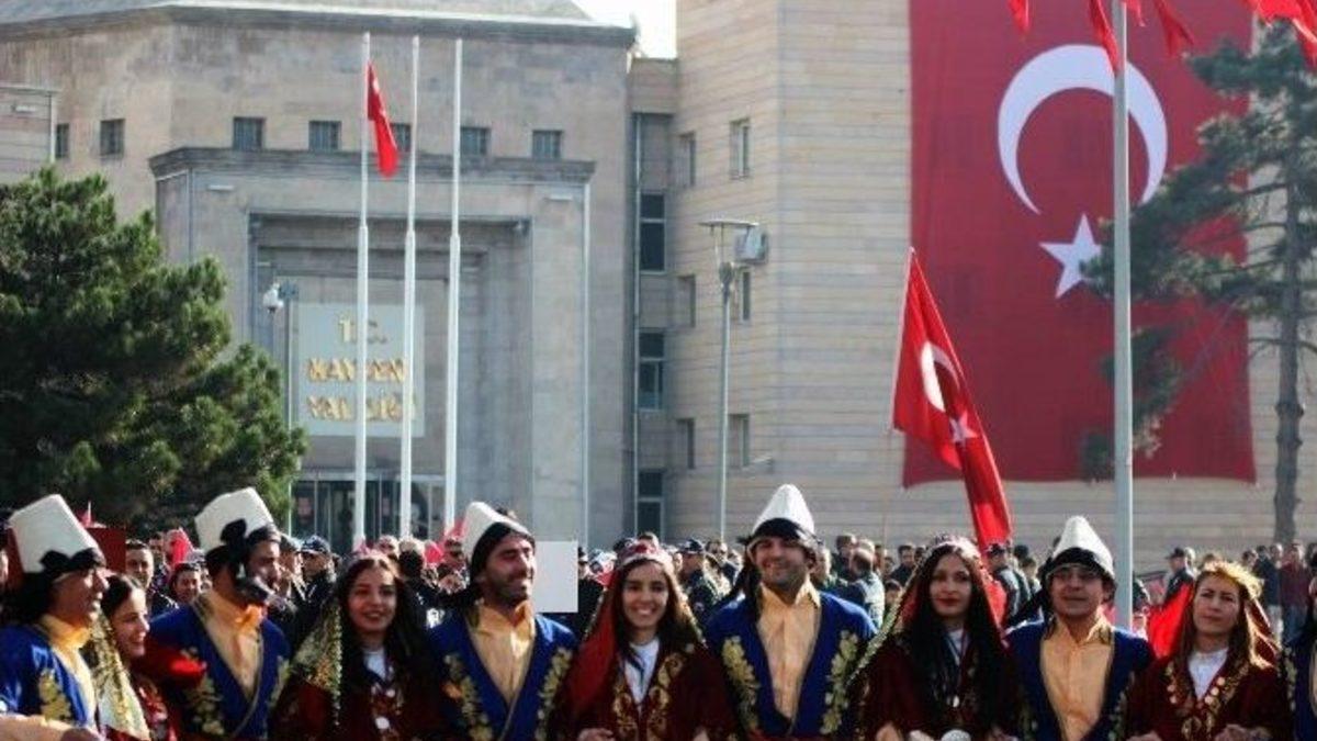 29 Ekim Cumhuriyet Bayramı Kayseri’de coşkuyla kutlandı.Kayseri’de 29 Ekim Cumhuriyet Bayramı dolayısıyla bir dizi etkinlikler düzenlendi. İlk olarak Kayseri Valisi Süleyman Kamçı, Garnizon Komutanı Tuğgeneral Ercan Teke ve Büyükşehir Belediye Başkanı Mustafa Çelik, valilik makamında protokol üyeleri ile bayramlaştı.Daha sonra Cumhuriyet Meydanı’nda geçen Vali Kamçı, Garnizon Komutanı Teke ve Büyükşehir Belediye Başkanı Çelik, protokol üyelerini ve vatandaşları aracı üzerinden selamdı. Saygı duruşunda bulunulması ve İstiklal Marşı’nın okunmasının ardından bir konuşma yapan Kayseri Valisi Süleyman Kamçı, "Cumhuriyet Bayramımızın 93. yıldönümü milletimiz ve milletimizin mevcudiyetine muhtaç olan insanlık için esenliklere vesile olmasına adına kutlu olsun. Bildiğiniz gibi Osmanlı Devleti ile 600 yıl hükümdarlık kuran büyük Türk milleti, 19. yüzyılın sonlarına gelindiğinde dünyada ortaya çıkan gelişmelere uyum gösterememiş ve son 100 yıllık döneminde ayaklanmalara ve ihanetlere uğramıştır. Milletimiz dünyanın gördüğü en büyük savaşlarda dahi ne kadar zor ve çetin şartlarda olursa olsun hiçbir dayatma dayatmayı kabul etmeyeceğini göstermiştir. Milletimiz, İstiklal Marşı şairimiz Mehmet Akif Ersoy’un muhteşem anlatışıyla, ’Ben ezelden beri hür yaşadım, hür yaşarım. Hangi çılgın bana zincir vuracakmış şaşarım. Kükremiş sel gibiyim, bendimi çiğner aşarım. Yırtarım dağları enginlere sığmam taşarım’ diyerek hiçbir boyunduruk altına girmeyeceğini, Gazi Mustafa Kemal Atatürk’ün başlattığı kurtuluş mücadelesiyle tüm dünyaya göstermiştir. Kurtuluş destanımız sadece bizim milletimizi kurtarmamış, işgal altında ve sömürge haline gelmiş milletlere de örnek ve umut olmuştur. Büyük önder yeni kurulacak devletin devletin yönetim şeklini millet esasına dayalı bir yönetim şekli olan Cumhuriyet olması gerektiğine inanmaktaydı." ifadelerini kullandı.Konuşmanın ardından Gençlik Hizmetleri ve Spor İl Müdürlüğü halk oyunları ekibi ve cimnastik kulübü üyelerinin gösterileri büyük alkış aldı. Etkinlik, öğrencilerin şiir okumasıyla devam etti.Düzenlenen etkinlik, tören yürüyüşünün ardından sona erdi.