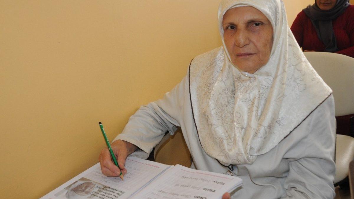1,5 ay önce evinin yakınında kurs açıldığını öğrendiğini anlatan Arı, “Ben de hemen gelip kursa yazıldım. Çok güzel bir duygu. Çocuklarım sevindi, destek verdi. Bu yaşıma geldim bir adımı bile yazamadım. Bazı komşularım beni görünce güldü. Bazılarının da hoşuna gitti. Bu kursa geldiğim için çok seviniyorum. Oturup ders yapıyorum. Çok mutlu oluyorum. Çok güzel bir şey. Herkese tavsiye ediyorum. Bir oğlum öğretmen diğer çocuklarım memur. Oğlum uzaktadır, ona mektup yazacağım. İlk başlarda elim zorlandı. Şimdi elim alıştı. Bana bu yaşımda bu imkanı saylayan Başta Cumhurbaşkanımızın eşi Emine Erdoğan hanımefendi ve kaymakamımız, belediye başkanımız Şakir Öner Öztürk’e çok teşekkür ederim” dedi.