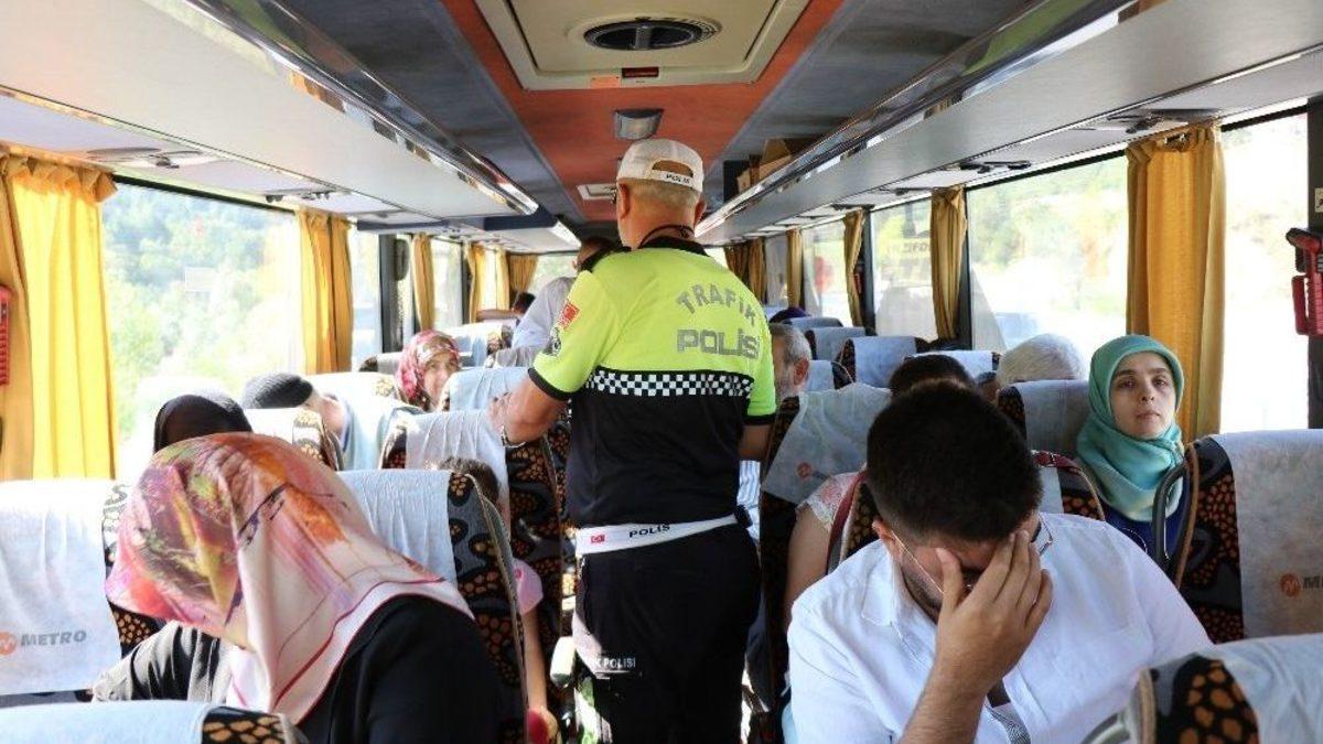 Kemer uygulamasında otobüs dışındaki araçlar da denetlendi. Kemer takmadığı belirlenen sürücü ve yolculara ceza kesildi.