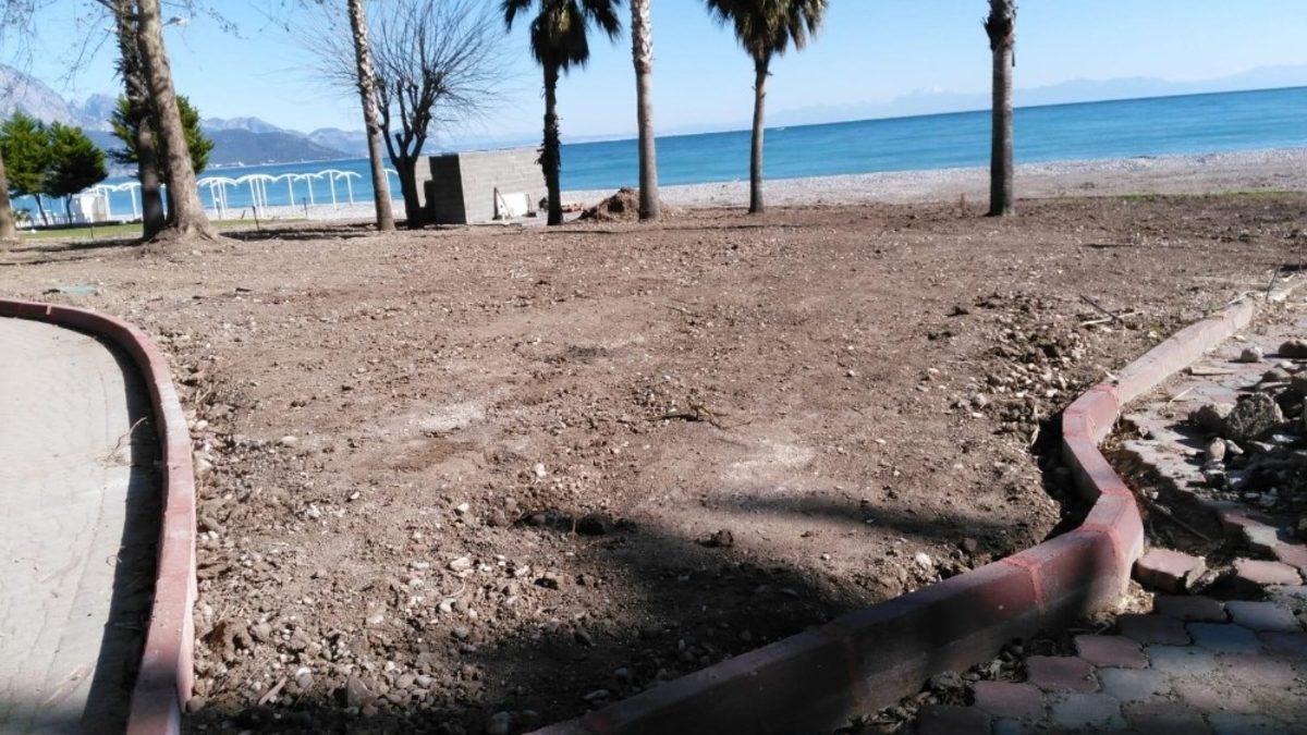 Parklardaki işgallerden arındırma çalışmalarına hız veren Kemer belediye ekipleri, Olbia Park içerisindeki sosyal donatılarını yeniden inşa ediyor.