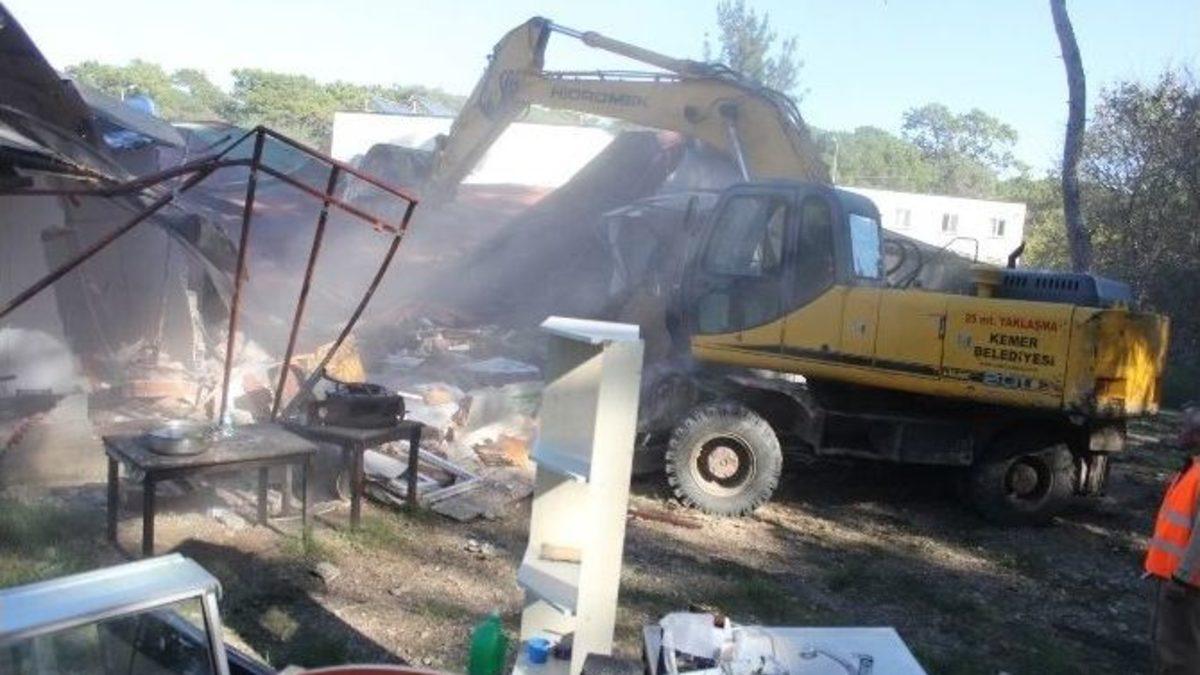 Antalya’nın Kemer ilçesinde belediye ekipleri, çoğunluğu dükkan olan kaçak yapılar hakkında daha önce alınmış yıkım kararlarını uygulamaya başladı. 82 dükkanın bulunduğu çarşıda uygulanan yıkıma mal sahipleri itiraz ederken, belediye ekiplerinin elinde 40’ın üzerinde yıkım kararı bulunduğu öğrenildi.Belde belediyesiyken Konyaaltı ilçesine bağlanan, 2012 yılında da referandumla Kemer’e bağlanan Beldibi’ndeki imara aykırı ve kaçak binalar hakkında hem Konyaaltı, hem Göynük belde belediyelerinin kaçak tespit tutanakları ve yıkım kararları bulunuyordu. Kemer Belediye Encümeni, İmar Kanunu’na ve 775 sayılı Gecekondu Kanunu’na aykırı yapıların yıkımına karar vermişti.JANDARMA GENİŞ GÜVENLİK ÖNLEMLERİ ALDIJandarmanın güvenlik tedbirleri altında son birkaç gündür devam eden yıkım, son olarak 82 dükkanın bulunduğu çarşıda başlatıldı. Sabah saatlerinde Antalya Jandarma Alay Komutan Yardımcısı Yarbay Fatih Üstündağ komutasında özel birlikler ve Kemer Jandarma Garnizon Komutanı Yüzbaşı Yasin Berçin ile görevli subayların idaresindeki birlik, yıkımın yapılacağı Atatürk Caddesi’nde bulunan Arslan Çarşısı içinde ve çevresinde geniş güvenlik önlemleri aldı.ENGELLEMEK İSTEDİYıkım ekiplerinin geldiğini haber alan çarşı sahibi Burhan Arslan, kendilerine tebligat yapılmadığını belirterek yıkımı durdurmak istedi. Yıkımı kendilerinin yapmak istediğini söyleyen Burhan Arslan, "Camların tanesi 2 bin lira yapmayın" dedikten sonra, belediye ekiplerine "Bizim suçumuz size oy vermek" diye bağırdı.ARA DUVARLAR BALYOZLARLA YIKILDIKemer Belediyesi’nin İmar ve Şehircilik, Fen İşleri Zabıta, Park ve Bahçeler, Hayvan Barınağı birimlerinin hazır bulunduğu yıkımda, dükkanların içindeki eşyaların tahliye edilmesinde ve camlarının sökülmesinde belediye görevlileri yardımcı oldu. Çarşıdaki bazı dükkanların ara duvarları balyozlarla yıkılırken, dış tarafta kalan dükkanların tuğla duvarları öğleden sonra kepçeyle yıkıldı. Belediye yetkilileri, yıkım kararlarının uygulanmasına devam edileceğini belirterek, kaçak dükkanlarda bulunan eşyaların tahliye edilmesi konusunda uyardı.