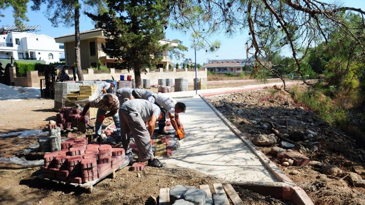 Kemer Belediyesi Fen İşleri Müdürlüğü ekipleri, Merkez Mahallesi 159. sokaktaki bozuk yolu yeniden şekillendiriyor.