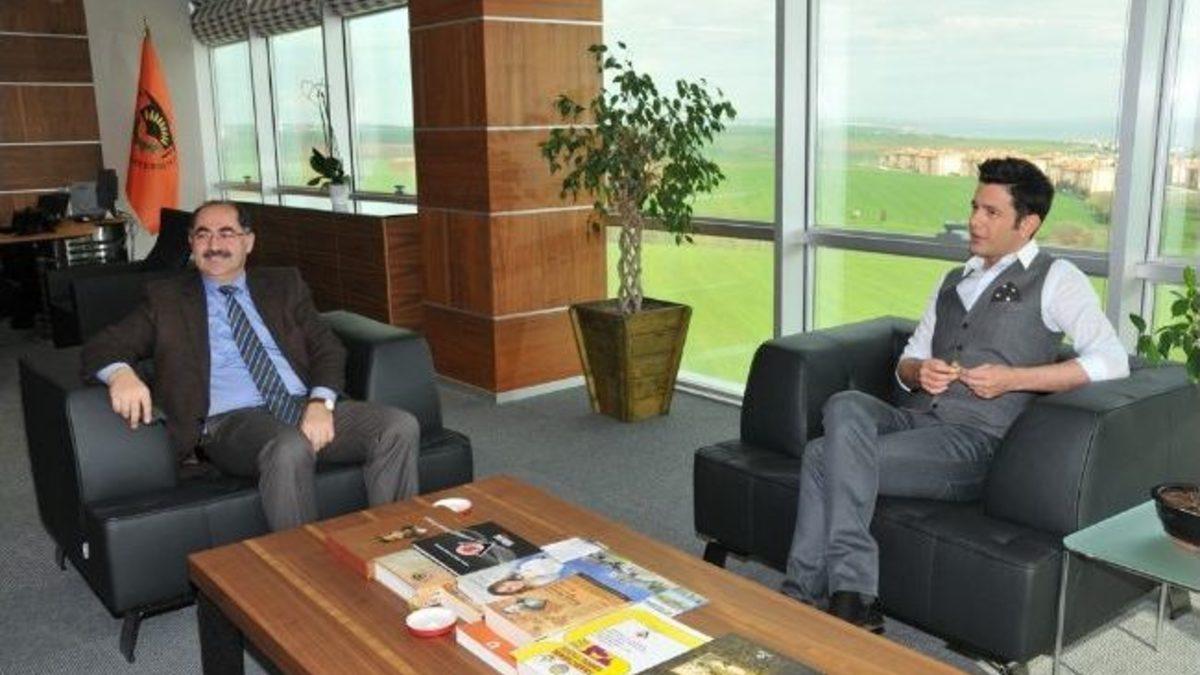 Rektör Prof. Dr. Osman Şimşek de Keremcem ve ekibini ağırlamaktan memnuniyet duyduğunu ifade ederek, kendisine süslemeli tabak hediye etti.