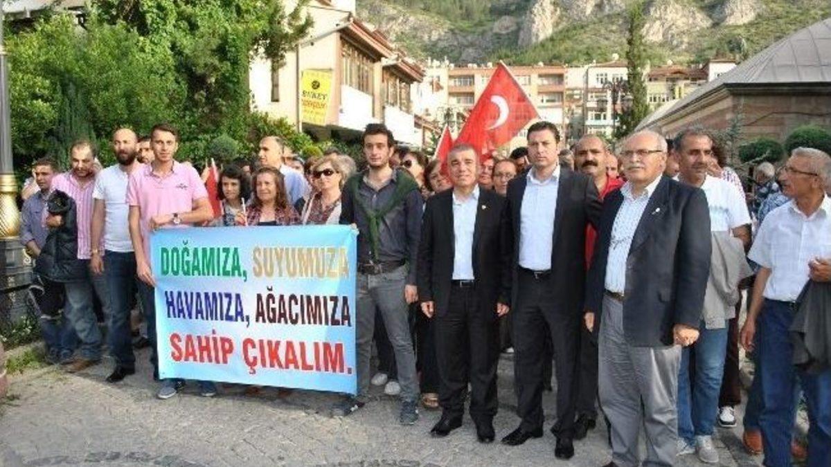 Amasya’da akaryakıt istasyonu yapılması planlanan 3.5 dönümlük alan üzerindeki ağaçların kesilmesi üzerine vatandaşların başlattıkları eylemin devam etmesi üzerine şehre gelen CHP Amasya Milletvekili Ramis Topal, telefon görüşmesi yaptığı CHP Genel Başkanı Kemal Kılıçdaroğlu’nu konu hakkında bilgilendirdi.Kılıçdaroğlu’na valilik, belediye, baro yetkilileri ve eyleme katılan mahalle sakinleriyle görüşmeler yaptığını anlattığını belirten Ramis Topal, “Elimizde yetişmiş bir parka akşam saat 18.00'de 6 tane hızarlı insanın girip ağaçları patır patır devirmesi bizim yüreğimize saplanan bir hançer gibi oldu” dedi.KESK’e bağlı sendikalar, CHP ve diğer sivil toplum kuruluşları üyeleri Amasya Belediyesi önünde yapılan açıklamanın ardından ağaçların kesildiği alana yürüyüşe geçti.75. Yıl İMKB Beyazıt İlkokulu karşısındaki alandaki ağaçlar numaralandırılarak koruma altına alındı. 45 ağacın kesildiğini öne süren işçi emeklisi Seyfettin Yündem, halen alandaki 90 ağacın üzerine numara yapıştırdıklarını söyledi.Alandaki gençler müzik dinleyip, bazıları da iskambil oynadı. Davul-zurna eşliğindeki alana gelen Eğitim Bir-Sen Amasya Şube Başkanı Kerem Camcı ve diğer üyeler de eyleme destek verdi.