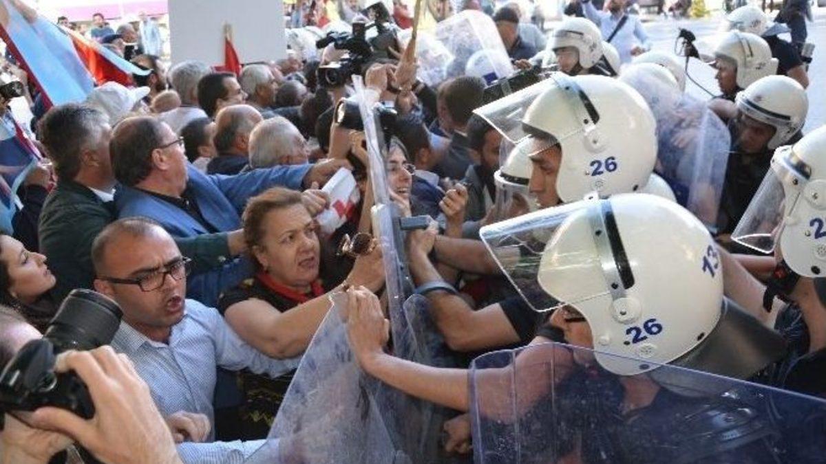 Eskişehir’de CHP Genel Başkanı Kemal Kılıçdaroğlu’na destek yürüyüşünde gerginlik yaşandı.CHP Genel Başkanı Kemal Kılıçdaroğlu’na yapılan saldırıyı protesto etmek için yürümek isteyen grup, Adalar mevkiinde toplandı. Yürüyüşe, milletvekilleri, Belediye Başkanları, Meclis Üyeleri katıldı. Yürüyüşe geçen grup, bir süre sonra polis ekipleri tarafından durduruldu. Yapılacak yürüyüşün güvenlik zafiyeti oluşturabileceği ihtimali gerekçesi ile polis ekipleri yürüyüş yapılmamasını söyledi. CHP Eskişehir İl Başkanı Sinan Özkar ile CHP Eskişehir milletvekili Cemal Okan Yüksel polis ekipleriyle görüştü. Yüksel, polis müdürüne "Biz şimdi istediğimiz yere yürüyeceğiz. Terörü lanetleyeceğiz, AK Partiyi lanetleyeceğiz, eğer halkın, devletin polisiyseniz yolu açacaksın, eğer AK Parti polisi isen kapat yolu hadi bakalım nasıl engel olacaksın bize" diyerek yürüyüşüne devam etti. Tekrar yürüyen gruba Çevik Kuvvet ekibi barikat kurdu. Milletvekili Cemal Okan Yüksel barikata yüklenince, arkadan gelen partililer de Okan’ı destekledi. Polis ekiplerinin barikatı açmasının ardından partililer Hamamyolu mevkiinde bulunan Saatli Park’a kadar yürüdü.Burada basın açıklaması yapan CHP Eskişehir İl Başkanı Sinan Özkar, Türkiye’nin güvenlik açısından en kötü durumda olduğunu ve bu sorunu da CHP’nin çözeceğini söyledi. Grup açıklamanın ardından olaysız şekilde dağıldı.