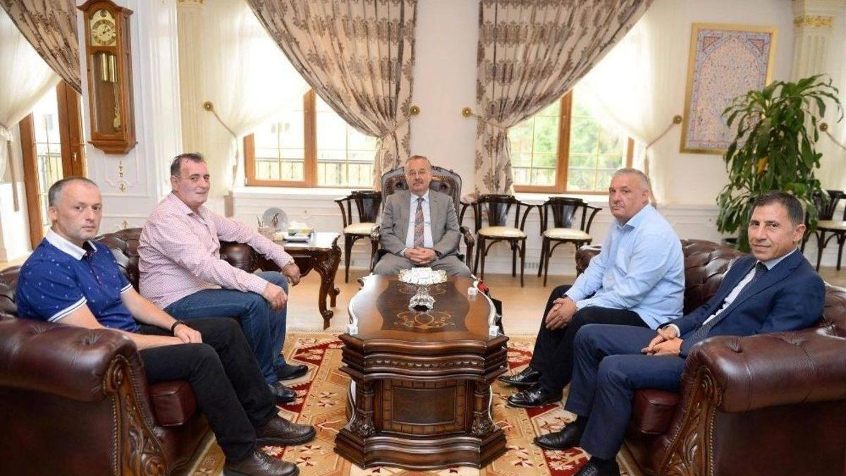 656’ıncı Tarihi Kırkpınar Yağlı Güreşleri’nde temsili koç satışı ile ağalık ihalesine katılan iş adamı Abdullah Türköz, Edirne Valisi Günay Özdemir ile Edirne Belediye Başkan’ı Recep Gürkan’ı ziyaret etti.İlk ziyaretini Edirne Valiliği’nde gerçekleştiren iş adamı Abdullah Türköz, Edirne Valisi Günay Özdemir ile görüşerek Kırkpınar ile ilgili genel değerlendirmede bulundu. Ziyaretten mutluluk duyduğunu belirten Edirne Valisi Günay Özdemir, Türköz’e çalışmalarında başarılar diledi. Valilik ziyaretinden sonra Edirne Belediyesi binasına geçen iş adamı Abdullah Türköz, Edirne Belediyesi Başkanı Recep Gürkan’ı ziyaret etti. Türköz, 656’ıncı Tarihi Kırkpınar Yağlı Güreşleri’nde temsili koç satışı ile ağalık ihalesinde bulunduğu 100 bin liralık bağışı Edirne Belediyesi Başkanı Recep Gürkan’a teslim etti.“Yağlı güreşlerin gelenekselliği korunmalı”Kırkpınar Yağlı Güreşleri’nin geleneğini korunması gerektiğini belirten Edirne Belediye Başkanı Recep Gürkan, “Yağlı güreş bir tarafa Kırkpınar bir tarafa. Kırkpınar’ın kalitesini arttırırsak biz, yıl içerisindeki yalı güreşlerin kalitesini arttırmış olacağız. Çünkü yağlı güreşin tek hedefi var, Kırkpınar’da çayıra çıkmak. Tek hedef ve hayali bu. O zaman Kırkpınar bu kadar önemliyse şu soruya cevap vermemiz lazım. 4 yıldır pehlivan sayısında rekor kırıyoruz. Her yıl rekoru tazeliyoruz. Bu yıl 2199 pehlivan kayıt oldu. Şimdi soru şu, her kıspetini alan doğrudan Kırkpınar’da güreşmeli mi? güreşmemeli mi? Soru bu. Güreşsin diyorsan, bu sene tablo ortada. Zaman yetmiyor, duş yetmiyor, çayır yetmiyor, soyunma odası yetmiyor. Bu kadar çok pehlivan güreşince, yağlı güreşin geleneksel bazı ritüelleri de eksik kalıyor. Mesela, cazgırların pehlivanları salavatla çayıra salması gerekiyor ama yapamıyor. Neden, bir boyda 300 pehlivan güreşiyor. Salavatlamaya kalksa 2 gün ona lazım. Yağlı güreşi yağlı güreş yapan özelliklerden biride gelenekselliği. Geleneksel motifliğin korunmasıdır” dedi.“Spor ve sporcunun her zaman yanındayız”Ziyaretler sonrası İhlas Haber Ajansı’na (İHA) açıklamalarda bulunan işadamı Abdullah Türköz, “Ata sporumuz olan Yağlı Güreşlerde ağalığı alıp memleketimiz şehzade şehri Amasya’ya, iş yaptığım Silivri’ye hediye etmek isterdim. Kaderimizde yokmuş bu yıl yapacak bir şey yok. İleriki senelere kısmet, nasipse bir şekilde Cenabı Allah nasip ederse bu işe talibim. Ata sporumuzu yaşatmak için elimizden geldiğince karınca kaderince bir şeyler yapmak, bir şeylerde verimli olmak elimizden ne geliyorsa yapacağız. 657’inci Kırkpınar ağalığına Ahmet Çetin’e hayırlı uğurlu olsun. Biz spor ve sporcunun her zaman yanındayız. Elimizden ne geliyorsa yapmak üzere varız” dedi.“Bu zamana kadar böyle güzel bir güreş izlemedim”656’ıncı Tarihi Kırkpınar Yağlı Güreş müsabakalarını değerlendiren Türköz, “Bu zamana kadar ben böyle bir güreş izlemedim, 20 senedir güreşleri takip ederim. Bu sene çok güzel centilmence, çok güzel müsabakalar oldu” dedi.Türköz, Edirne Valisi Günay Özdemir ve Edirne Belediye Başkanı Recep Gürkan’a Amasya Taşova’dan getirdikleri çiçek bamyası hediye etti. Edirne Belediye Başkanı Recep Gürkan ise Türköz’e, sembolik altın kemer, meyve sabunu ile Tarihi Kırkpınar Yağlı Güreşlerinin tüm bilgilerini bir araya getiren Kırkpınar Almanağı hediye etti. Türköz, bugünkü ziyaretlerde bizleri en iyi şekilde ağırlayan Edirne Valisi Günay Özdemir ve Edirne Belediye Başkanı Recep Gürkan’a çok teşekkür ettiğini söyledi.