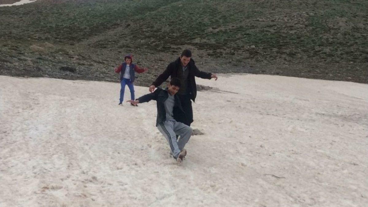 Van merkez Tuşba ilçesinde ikamet eden astım bronşit hastası Yusuf Hamdi Akyüz, kışın oynayamadığı kartopu oyununu Haziran’da 3 bin rakımlı Karapet Geçidi’nde oynadı.Tuşba ilçesine bağlı İskele Mahallesinde ikamet eden Akyüz ailesinin üçüncü çoğu olan Yusuf Hamdi Akyüz (17) astım ve bronşit hastası olduğu için babası kışın küçük kardeşi ve kuzeni ile kartopu oynamasına izin vermedi. Bunun üzerine babasına kırılan Akyüz, "yazınmı kartopu oynayacağım" dediğini duyan bana Akyüz, oğluna söz vererek, "seni yazın kartopu oynatacağım" deyip çocuğunun gönlünü aldı. Havaların ısınmasıyla dün 2 oğlunu ve yeğenini alıp yılın 12 ayında karın eksik olmadığı Van-Bahçesaray karayolu üzerindeki 3 bin rakımlı Karapet Geçidi’ne götürüp doyasıya kartopu oynayıp kar üzerinde kaydılar. Daha sonra 4 poşet kar alıp eve getirip burada da doyasıyla amcaları ile kartopu oynadılar.Sabah babasının hazırlanmalarını ve üzerlerini sıkı giyinmeleri söylediğini ifade eden Akyüz, "Babam bize hazırlanın gidiyoruz dedi. Nereye diye sorduk söylemedi. Yaklaşık 1 saat gittikten sonra karlı dağları görünce kışın bana verdiği sözü hatırladım. Kar yığınlarına geldik. Kardeşim ve kuzenimle doyasıyla kaydık, kartopu oynadık. Sonunda 4 poşet kar doldurup eve götürüp bir de orada oynayacağız" dedi.