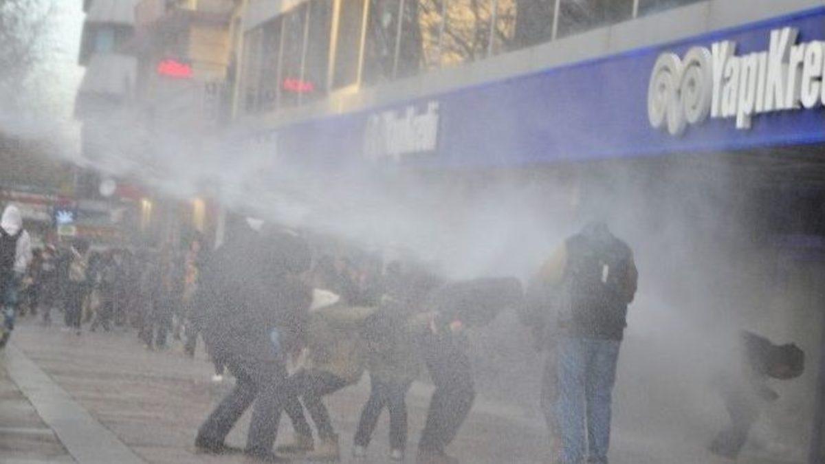ANKARA (İHA) – Ankara’da Berkin Elvan için eylem düzenleyen gruba polis müdahale etti.Kızılay Meydanı'nda toplanan çoğunluğunu lise öğrencilerin oluşturduğu grup Atatürk Bulvarı ve Ziya Gökalp Caddesi'ni trafiğe kapatmak isteyince polis ekipleri TOMA'larla tazyikli su sıkarak müdahale etti. Çevik kuvvet ekipleri daha sonra çok sayıda eylemciyi gözaltına aldı.