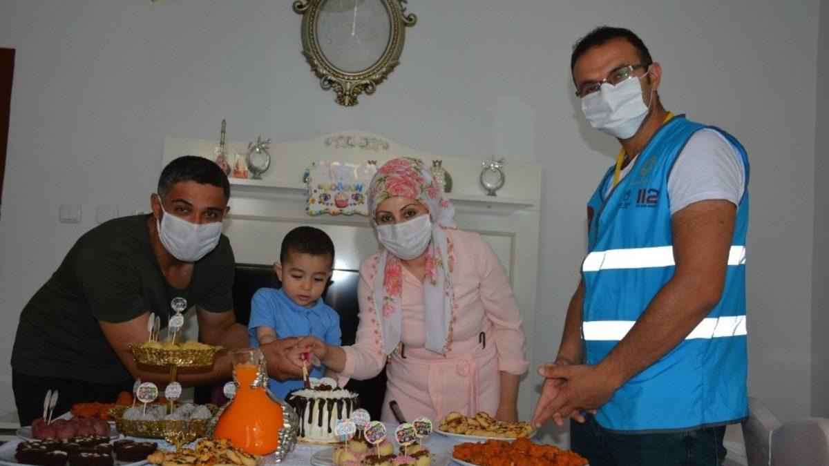 Mardin’in Kızıltepe ilçesinde Vefa Sosyal Destek Grubu ekibi, kısıtlama nedeni ile dışarı çıkamayan 2 yaşındaki Muhammed Mustafa’ya doğum günü sürprizi düzenledi.