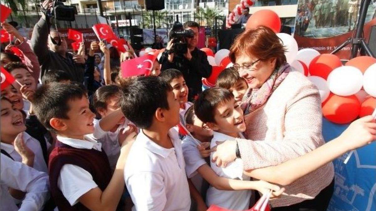 Konak Belediyesi’nin ilkokullar arası düzenlediği Cumhuriyet Coşkusu konulu resim yarışması sonuçlandı.Bu yıl 29 Ekim Cumhuriyet Bayramı’nı bir dizi etkinlikle kutlama kararı alan Konak Belediyesi’nin ilkokullar arası düzenlediği Cumhuriyet Coşkusu konulu resim yarışması sonuçlandı. Bu yıl ilk kez düzenlenen yarışmaya 215 eser katıldı. Miniklerin hayallerindeki cumhuriyet coşkusunu resmettiği yarışmada dereceye girenlere ödülleri Alsancak Dominik Caddesinde düzenlenen törende verildi. Cumhuriyet coşkusunun doyasıya yaşandığı etkinlikte çocuklar palyaçolar eşliğinde dans edip, şarkı söyledi. Ellerindeki Türk bayraklarıyla cumhuriyetin 91’inci yılını kutlayan çocuklar, hayal dünyalarını yansıttıkları resimleri de gururla sergiledi.“CUMHURİYET ÇOCUKLARA EMANET”Konak Belediye Başkanı Sema Pekdaş da törene katılarak cumhuriyet coşkusunu ve hayallerini renklerle anlatan çocukların mutluluğuna eşlik etti. Minik ressamların sevgi gösterileri arasında tören alanına giren Başkan Pekdaş, yarışmaya katılan öğrencileri tek tek kutladı. Ulu Önder Mustafa Kemal Atatürk’ün kurduğu Cumhuriyet’i yaşatmak ve geliştirmenin görevleri olduğunu vurgulayan Başkan Pekdaş, özellikle kız çocuklarından daha çok çalışmalarını ve meslek sahibi olmalarını istedi. Pekdaş, "Biz Cumhuriyet’i sizler için yaşatmak zorundayız. Onu geliştirecek olan ise sizlersiniz. Büyük Atatürk İnsanlar özgür yaşasın, kendileriyle ilgili kararları kendileri alsın, kızlar meslek sahibi olsun, özgür bireyler yetişsin diye, 29 Ekim 1923’te Cumhuriyet’i kurdu. Dolayısıyla biz kız çocuklarımızdan çok daha fazla şey bekliyoruz. Hem Ata’mıza verdiğimiz sözü yerine getirmek hem de cumhuriyeti daha çok geliştirmek için çalışmalıyız. Cumhuriyet coşkusu içimizden hiç eksilmesin ki; cumhuriyeti yaşatabilelim, daha ileriye götürelim. Sizler bizim geleceğimizsiniz. Sizler bizim coşkumuzsunuz. Bu coşkuyu yaşatmak, Cumhuriyet’i bu coşkuyla çoğaltmak bizim görevimiz. Bu Cumhuriyet sizlere emanet" diye konuştu.MİNİK RESSAMLARIN ÖDÜLLERİ PEKDAŞ’TANReyhan Abacıoğlu, Lale Temelkuran, Zeliha Koçoğlu Ceylan, Hülya Yalçın’dan oluşan seçici kurulun iki kategoride değerlendirdiği ve seçim yapmakta oldukça zorlandığı eserler arasında dereceye girenlere ödüllerini Konak Belediye Başkanı Sema Pekdaş verdi. Melih Özakat İlköğretim Okulu’ndan Derin Kaçar, Mehmet Akif Ersoy İlköğretim Okulu’ndan Elfim Havutçu ile Müdafa-i Hukuk İlköğretim Okulu’ndan Aylin Nil Çetinkaya, Mehmet Akif Ersoy İlköğretim Okulu’ndan ise Ege Üçsugan, Elif Sude Hantal ile Yağız Efe Uğurlu başarı ödülü ve katılım belgelerini Başkan Pekdaş’ın elinden aldı. Ödül töreninin ardından çocuklarla birlikte Cumhuriyet Coşkusu konulu resim yarışmasına katılan eserlerden oluşan sergi ziyarete açıldı. Başkan Pekdaş da sergiyi gezerek minik ressamlarla hatıra fotoğrafı çektirdi. Cumhuriyet Bayramı kutlamaları kapsamında düzenlenen tören renkli gösteriler ve ikramlarla gün boyu sürdü.