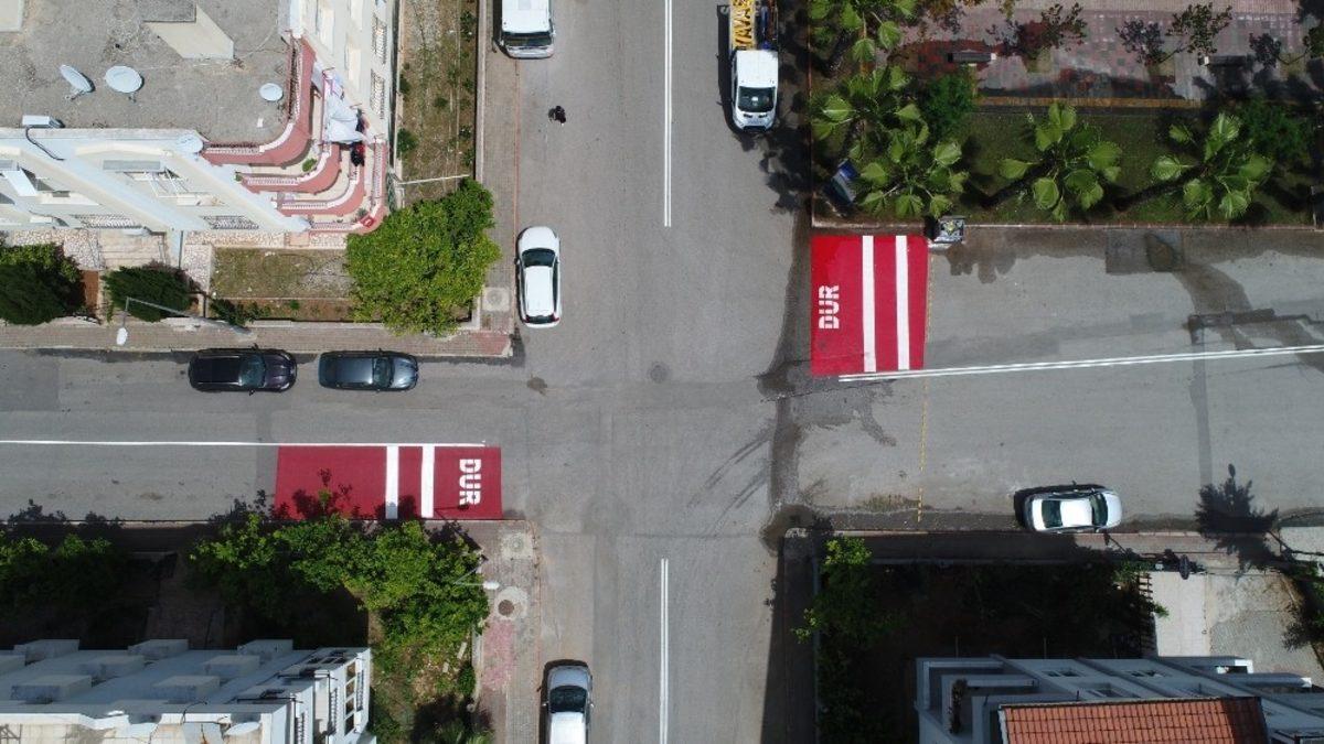 Konyaaltı Belediyesi, ara sokaklarda yaya güvenliğini arttırmak için işaretleme çalışması gerçekleştiriyor.